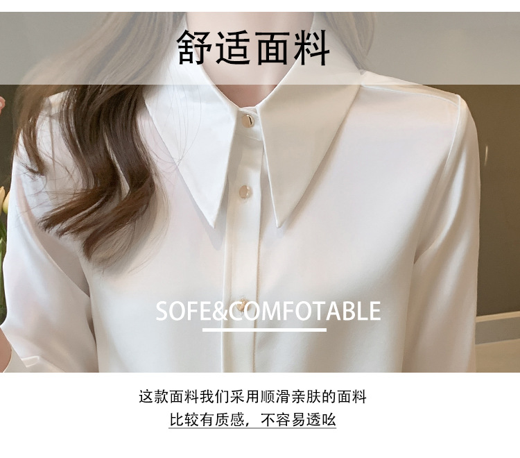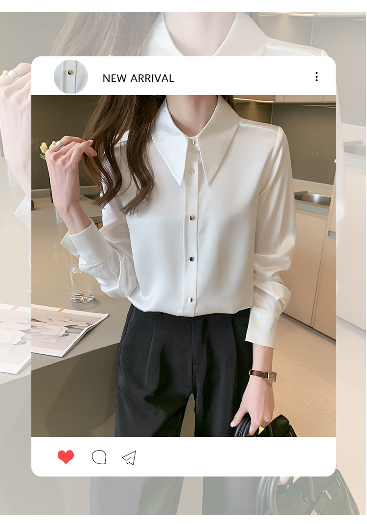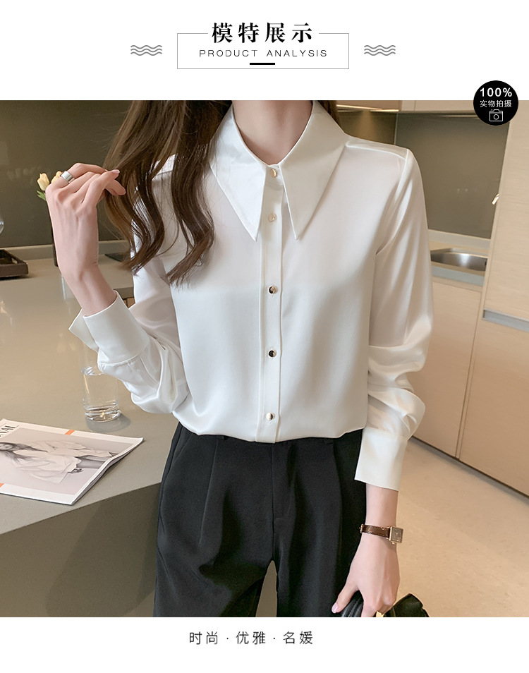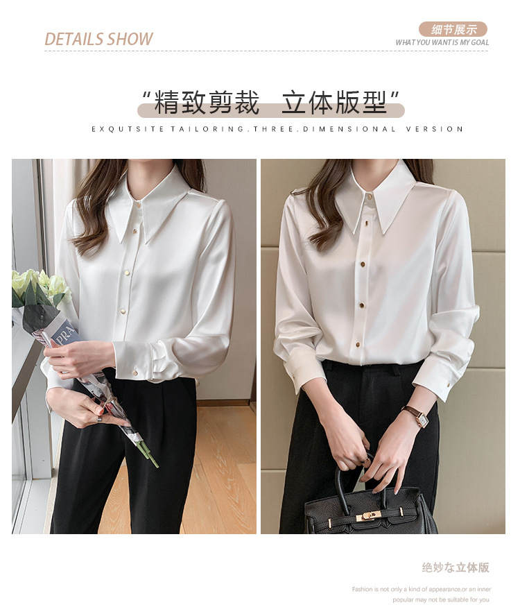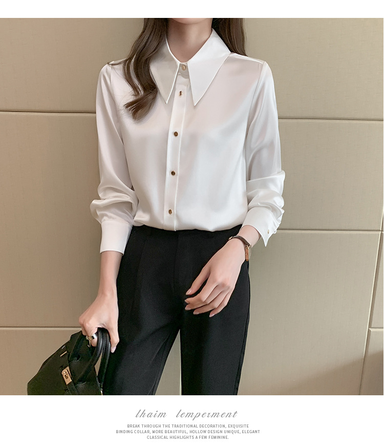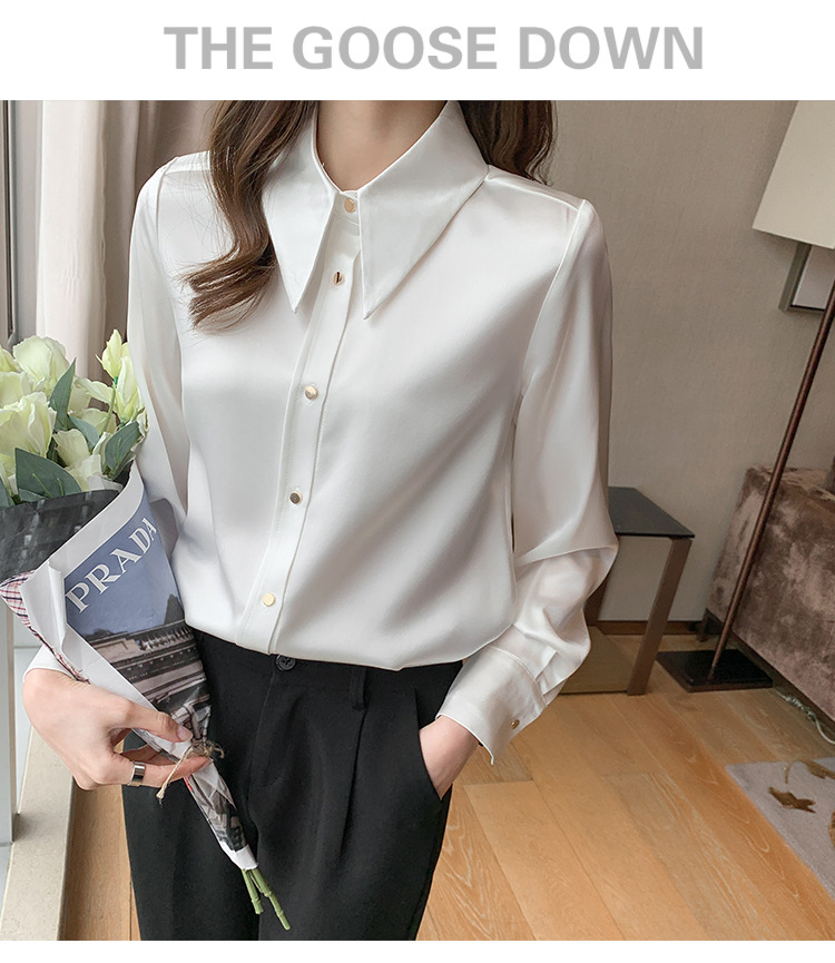 2025 봄 새로운 긴팔 새틴 셔츠 여성 고급 OL 통근 캐주얼 단순 광택 셔츠 쉬폰 셔츠스토어 가기