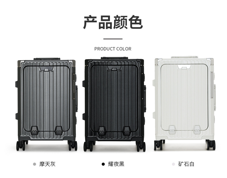 다기능 전면 개방 수하물 pc 알루미늄 프레임 20 인치 탑승 상자 비밀번호 여행 가방 충전식 트롤리 케이스 도매스토어 가기