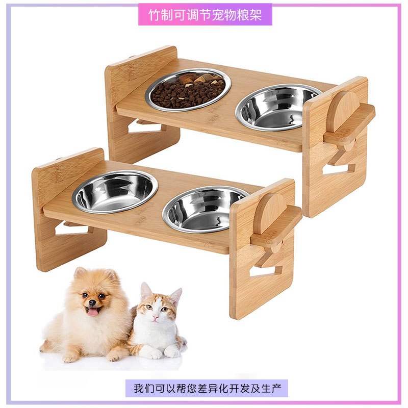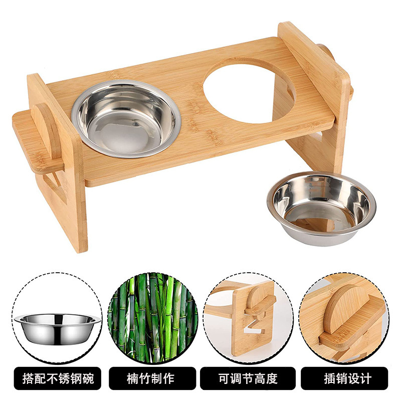 대나무 고양이 음식 랙 애완 동물 식기 개 트레이 대나무 나무 랙 세라믹 더블 볼 목 보호 높은 보호 경추 유니버설스토어 가기