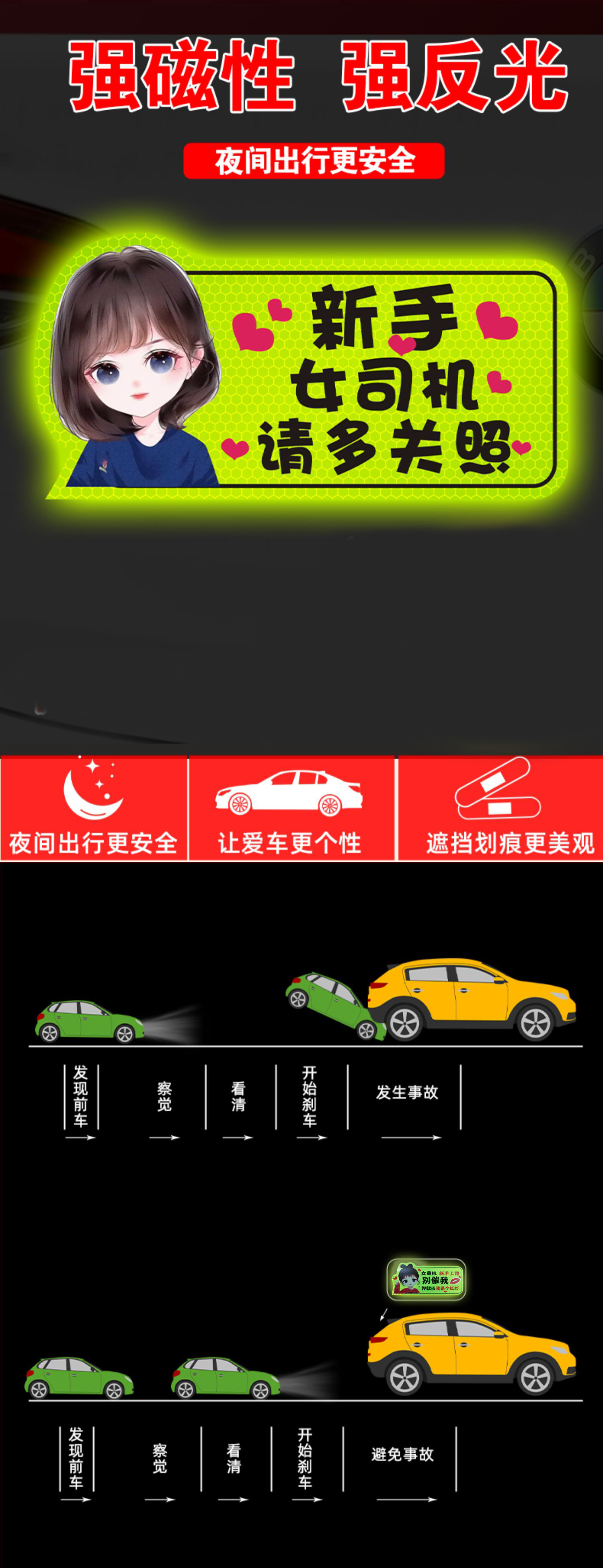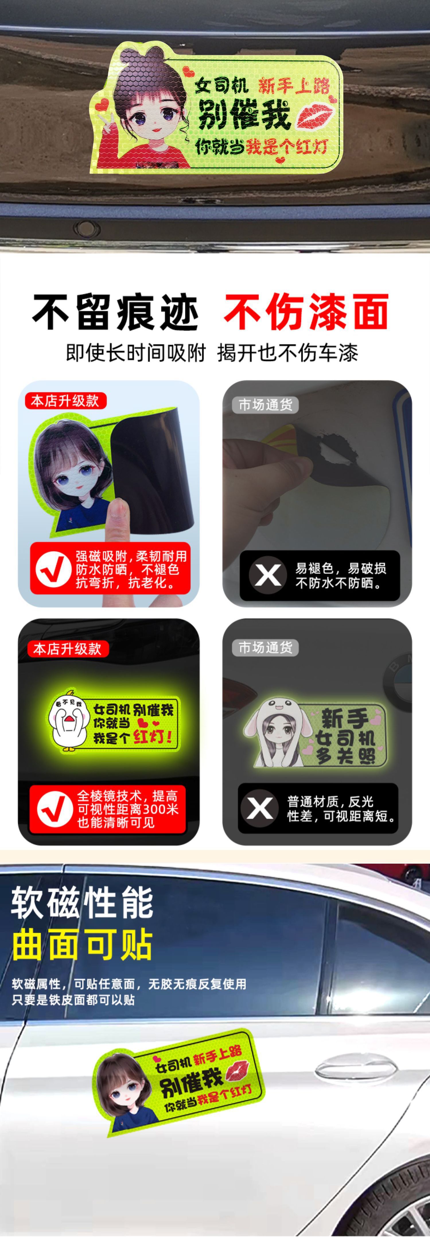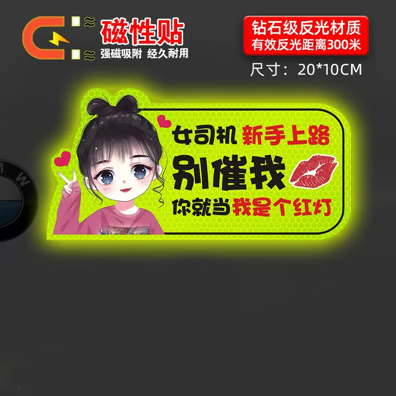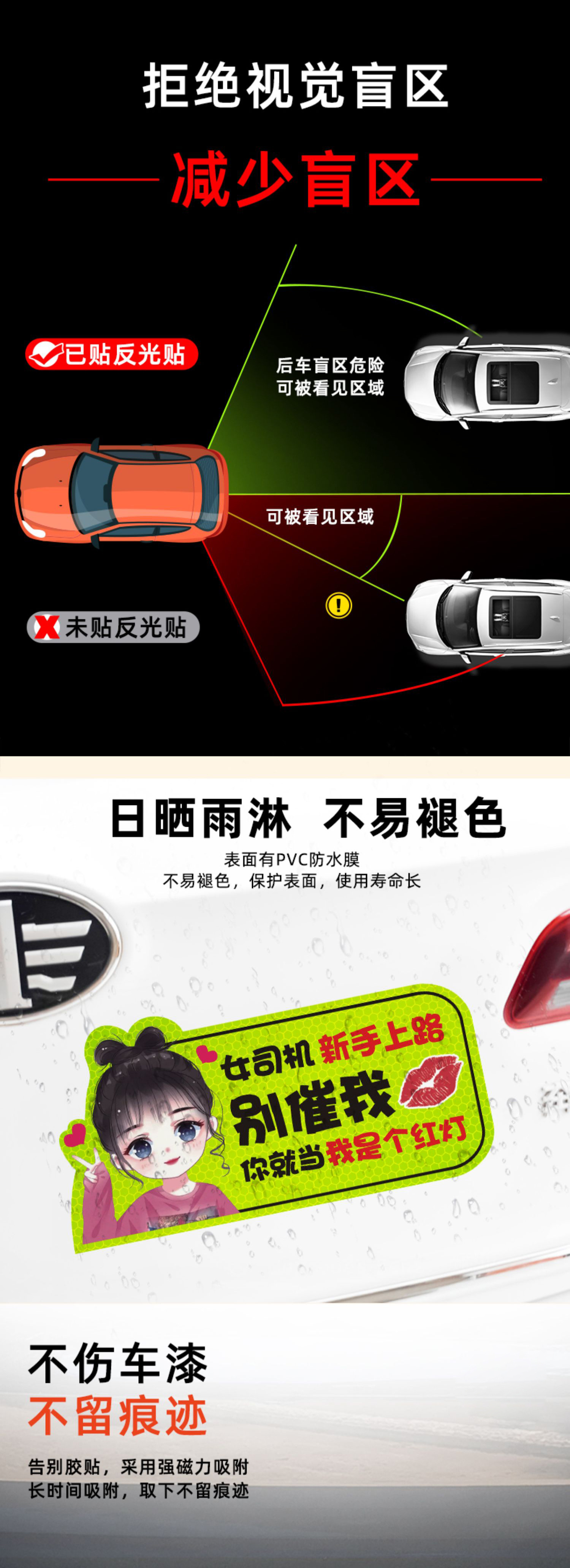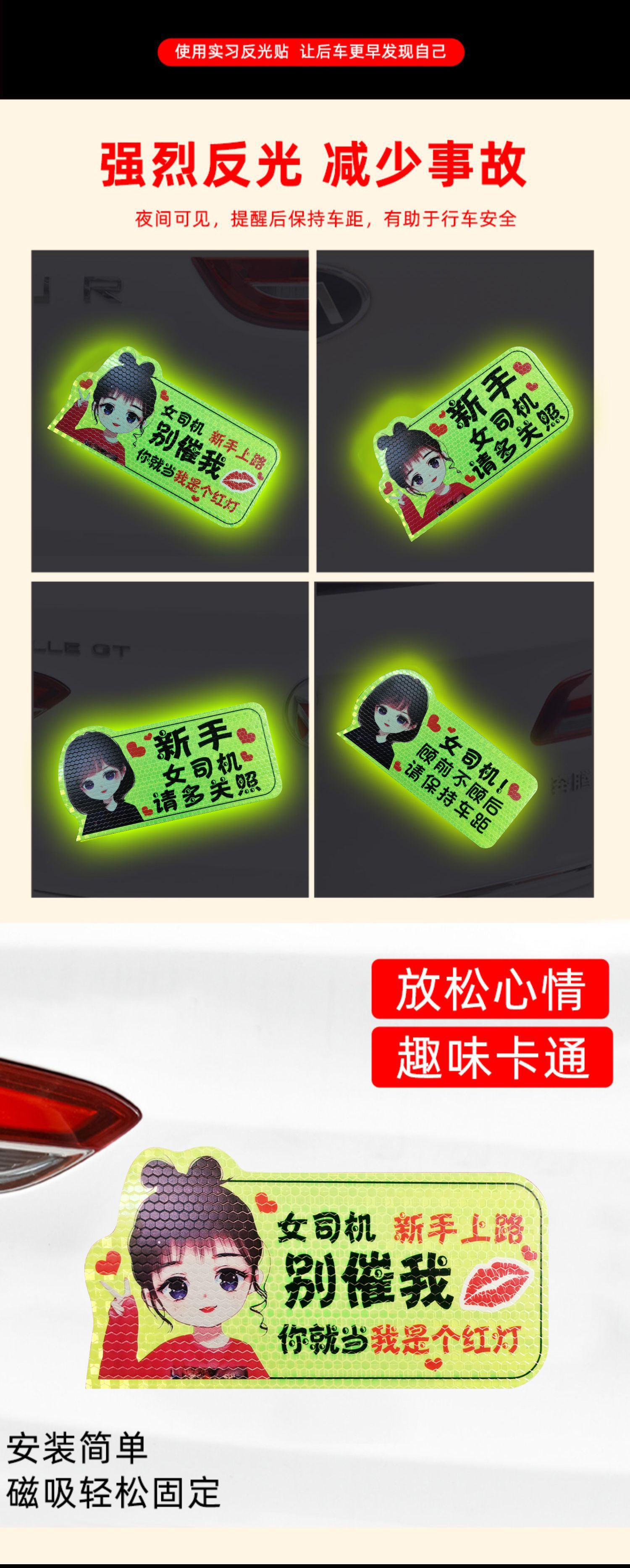 인턴십 중 초보자를위한 마그네틱 자동차 스티커 창조적 인 여성 운전자 자기 반사 재미있는 자동차 스티커 이 스티커 로고스토어 가기