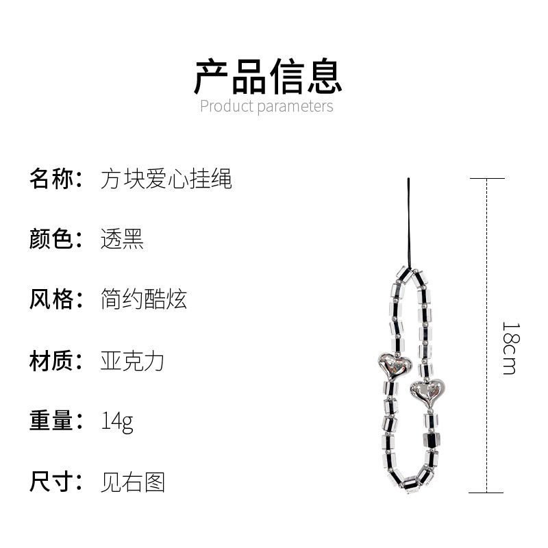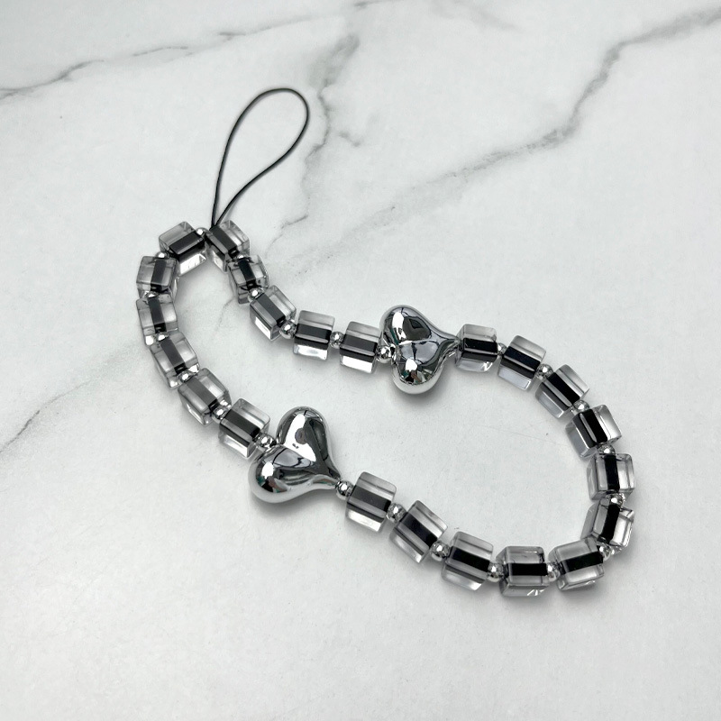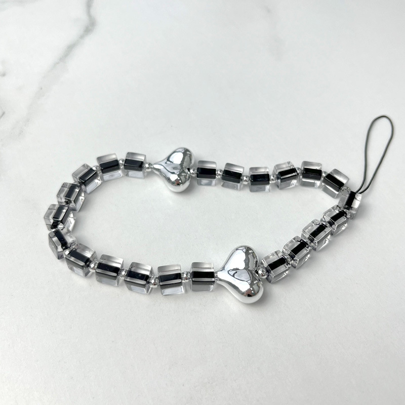 검은 구슬 휴대 전화 체인 진주 구슬 사랑 휴대 전화 끈 짧은 손 밧줄 낙하 방지 휴대 전화 걸이 액세서리