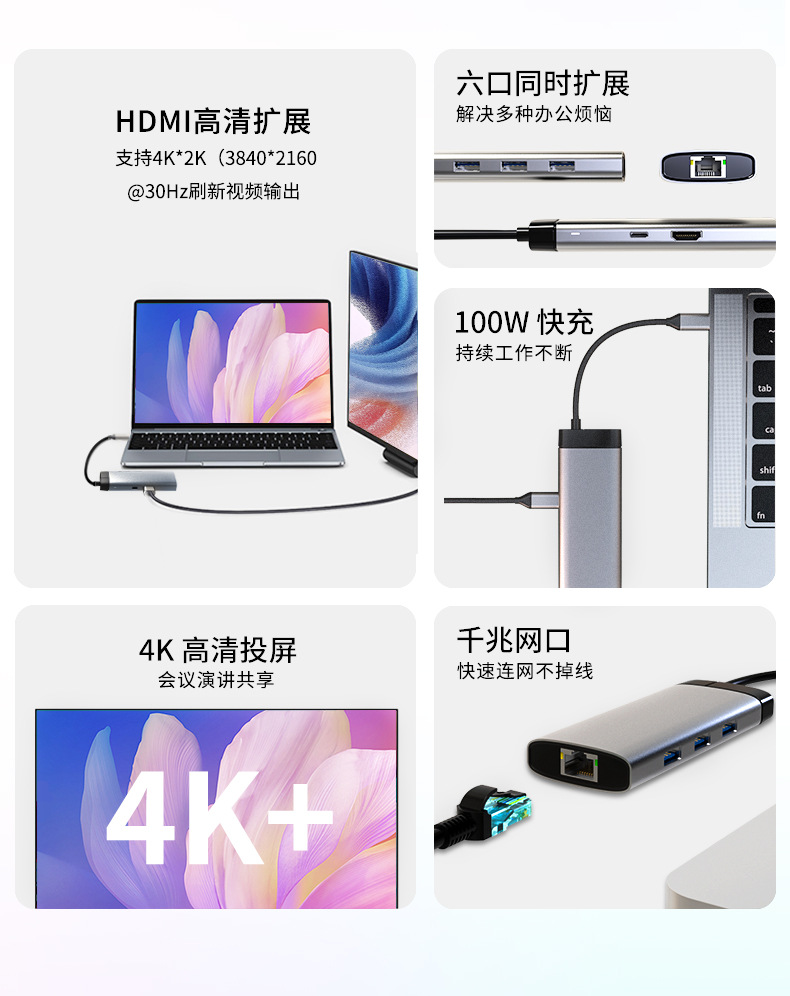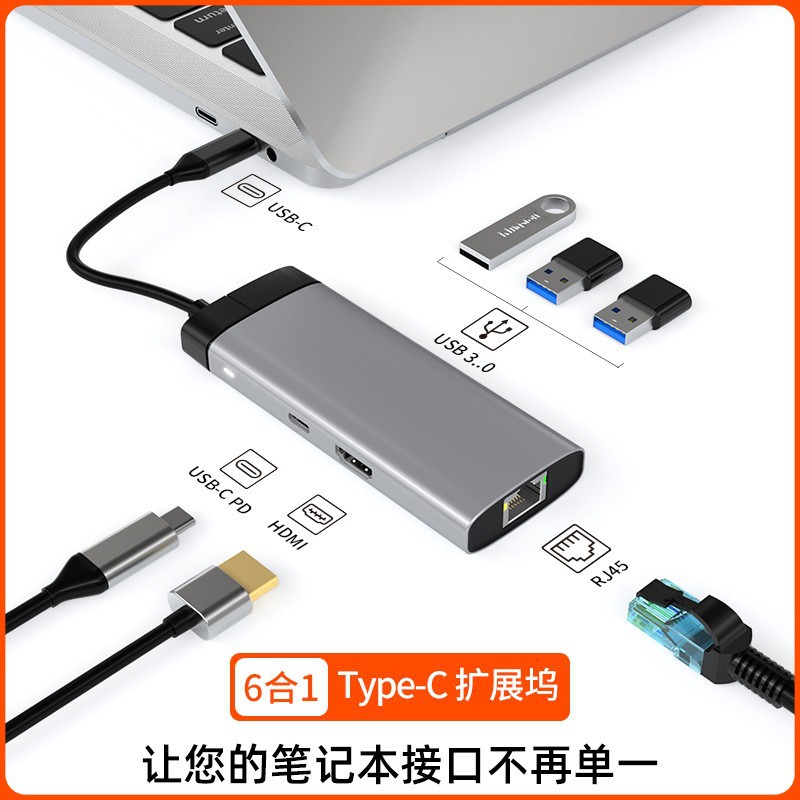 국경 간 컬러 시스템 유형 c 허브 도킹 스테이션 usb 허브 허브 6-in -1 노트북 도킹 스테이션스토어 가기