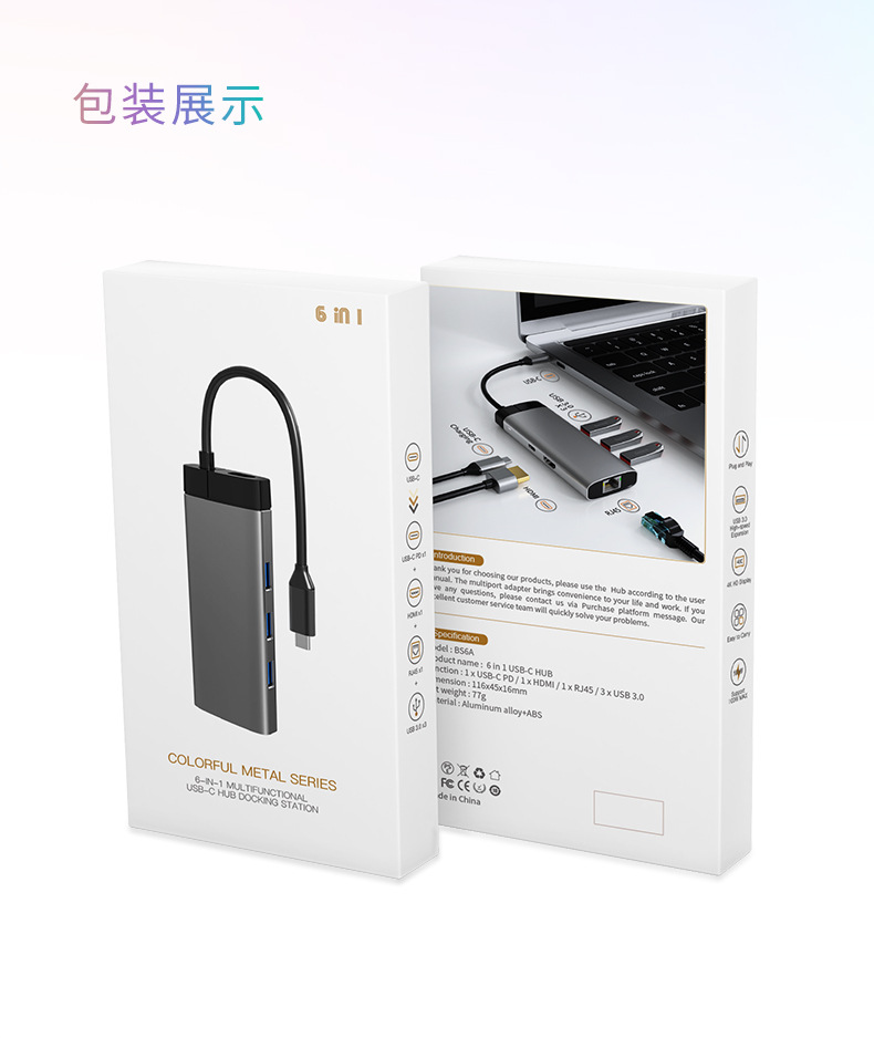 국경 간 컬러 시스템 유형 c 허브 도킹 스테이션 usb 허브 허브 6-in -1 노트북 도킹 스테이션