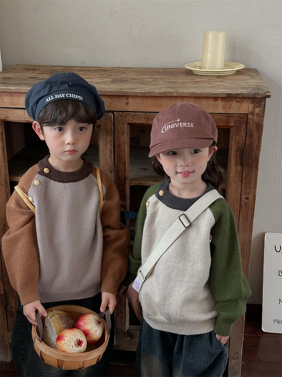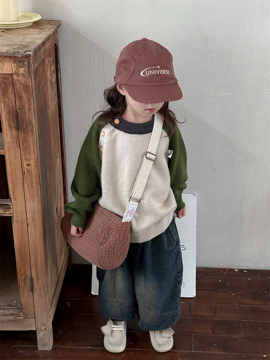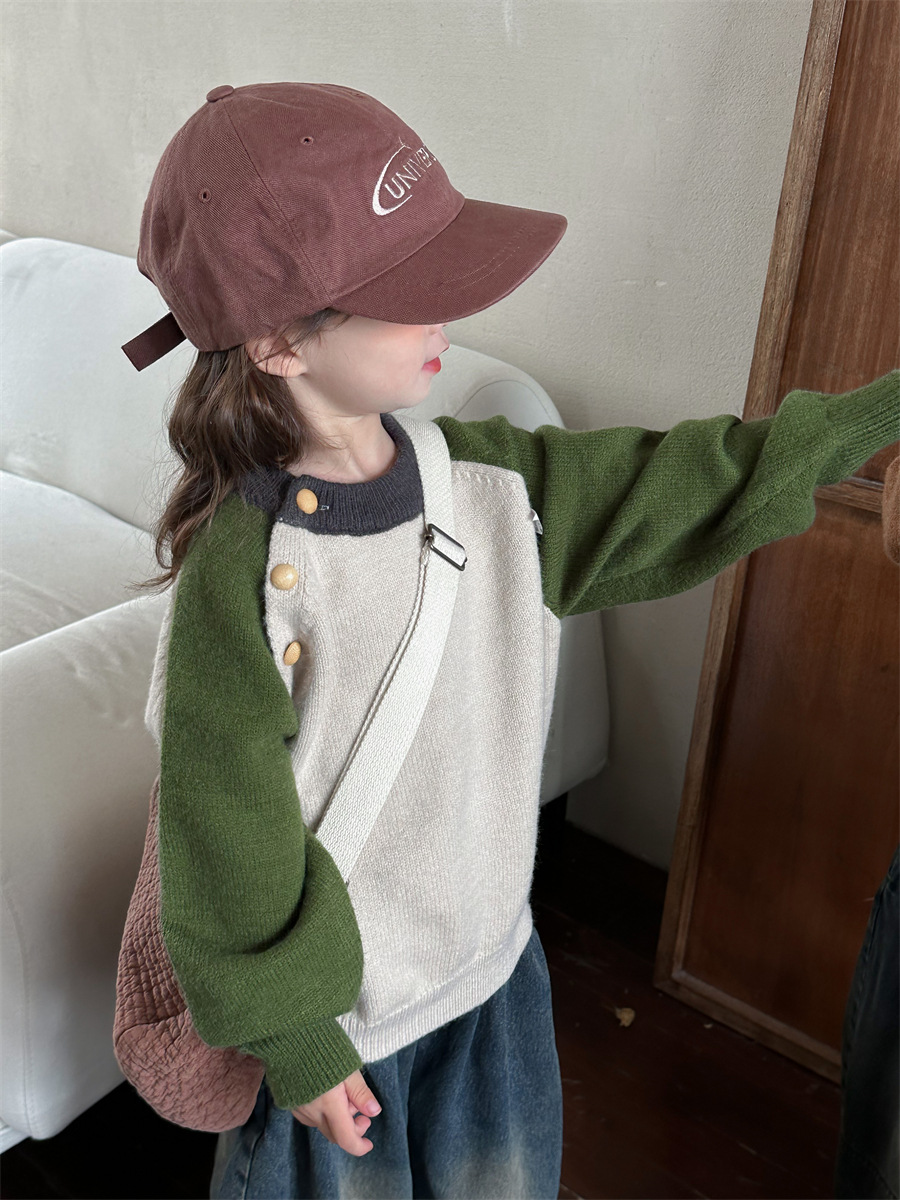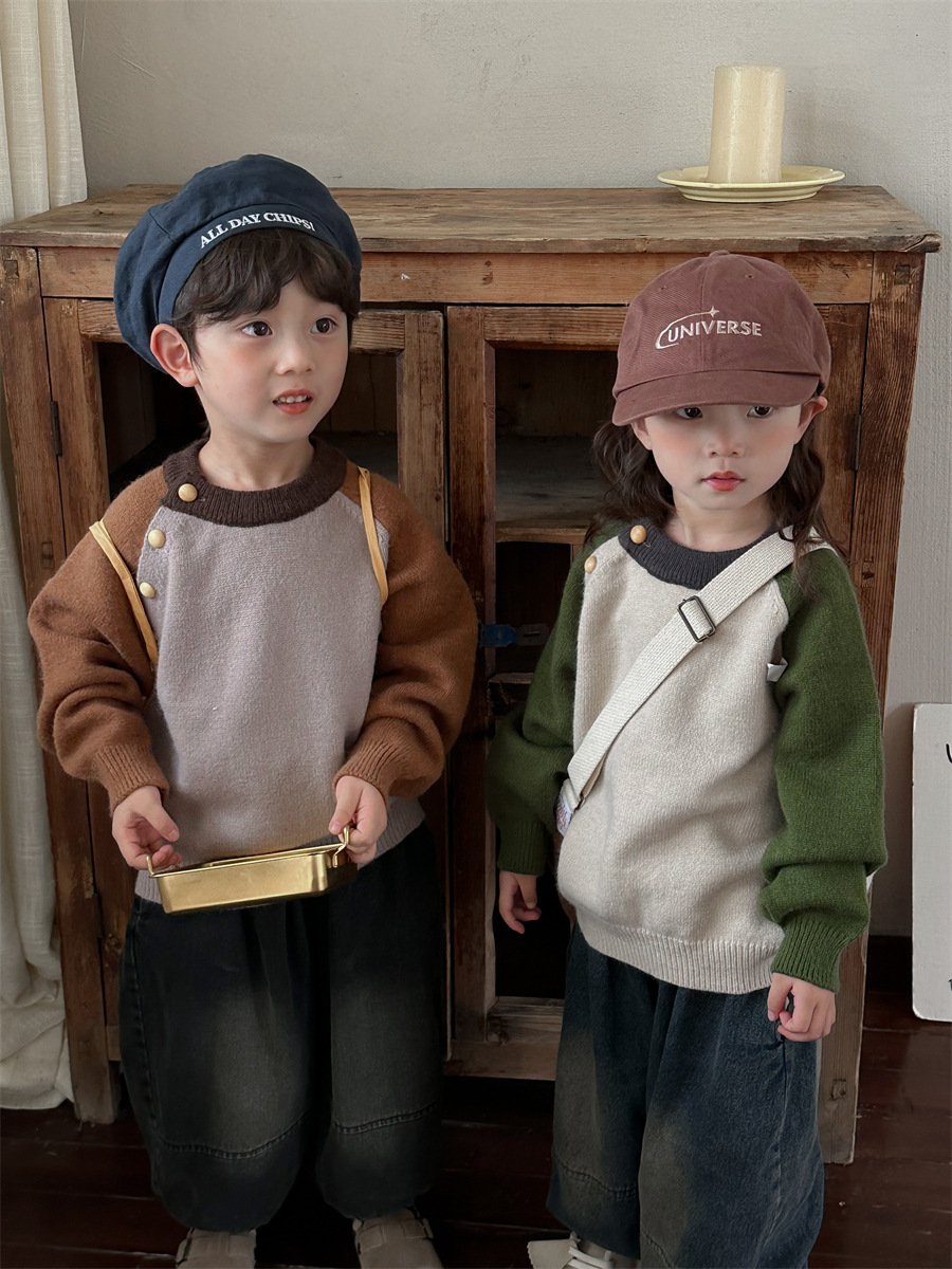 지아예 어린이 제품 2025년 겨울 신상품 래글런 슬리브 스웨터 남녀 아기용 라운드넥 루즈핏 따뜻한 상의
