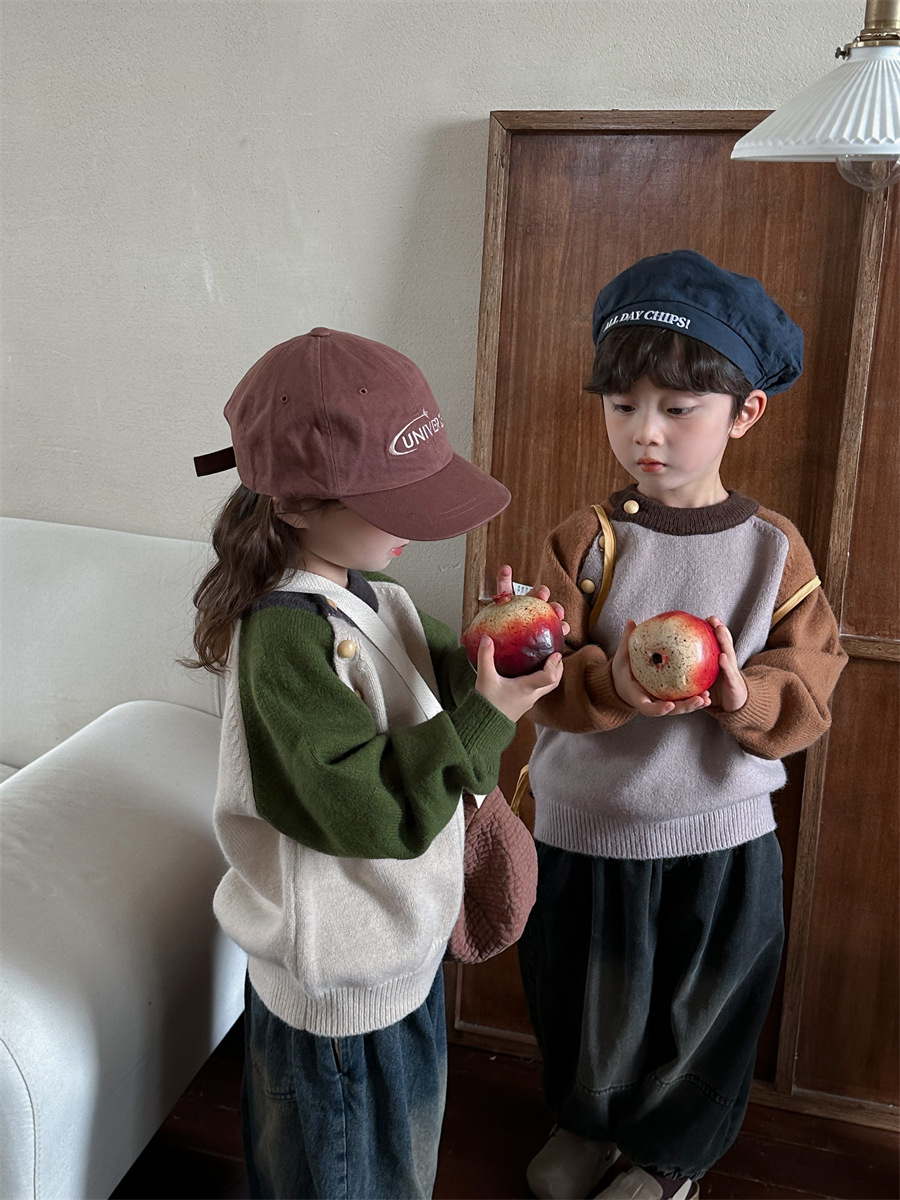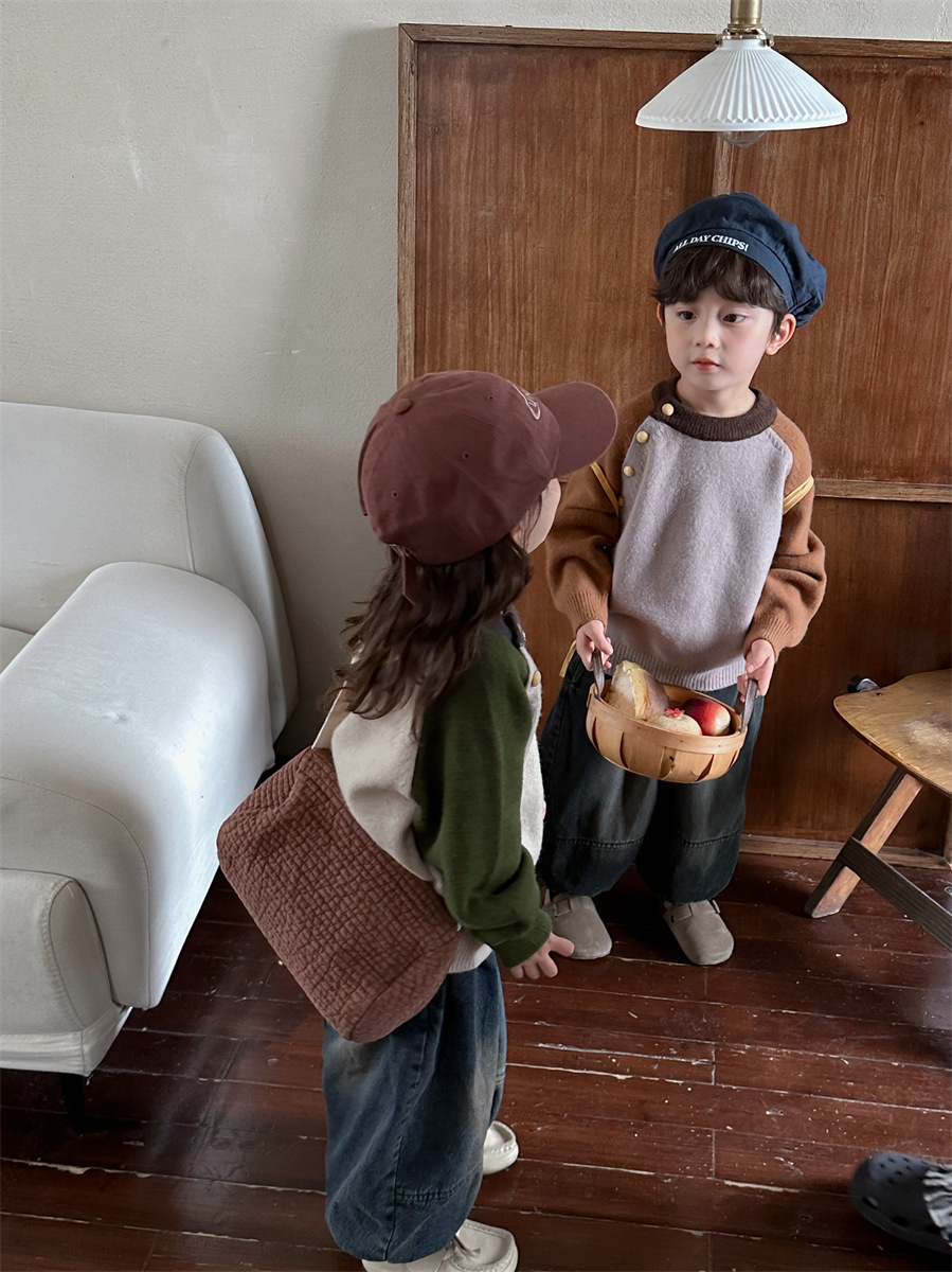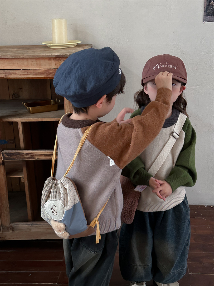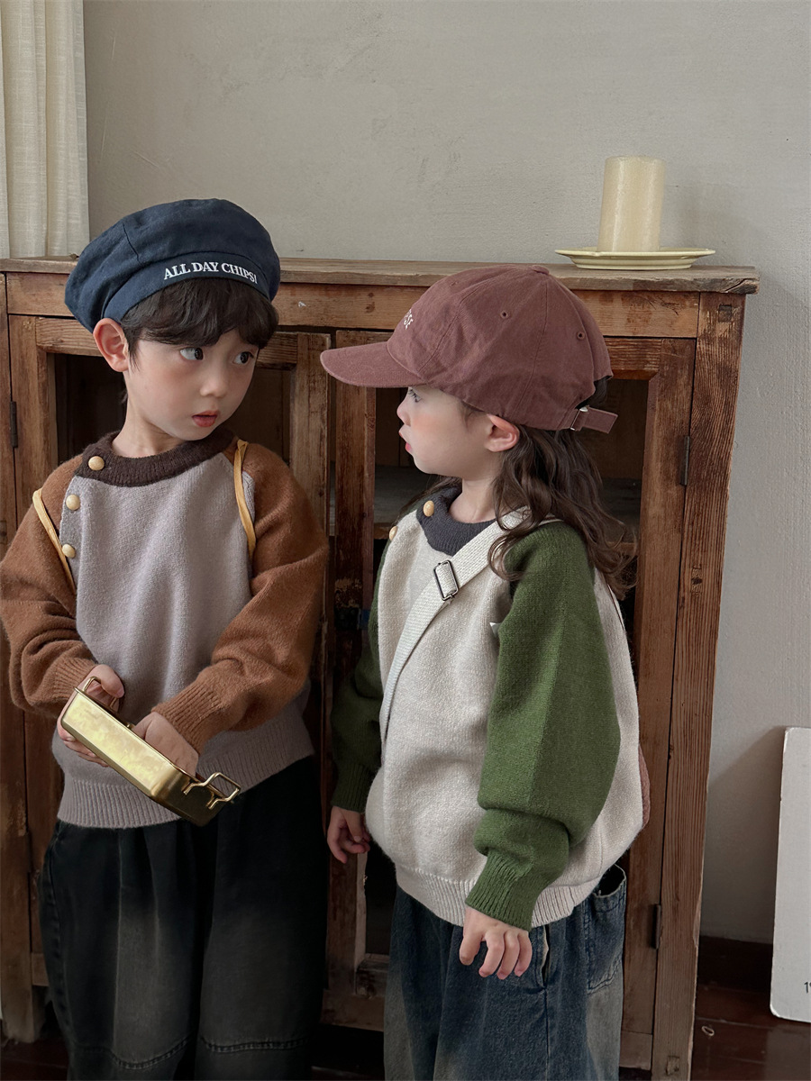 지아예 어린이 제품 2025년 겨울 신상품 래글런 슬리브 스웨터 남녀 아기용 라운드넥 루즈핏 따뜻한 상의