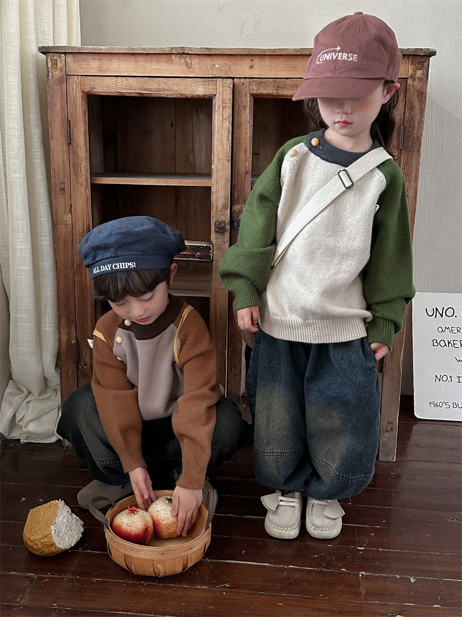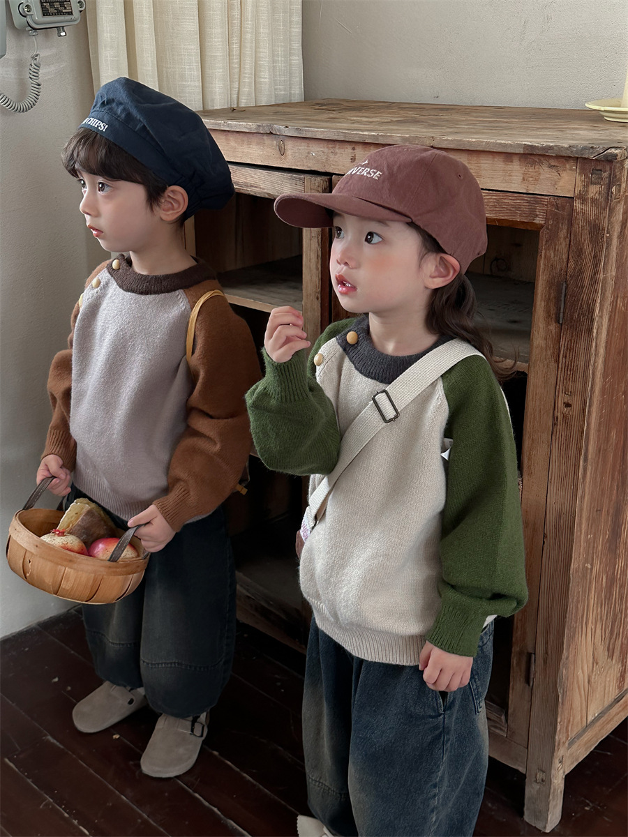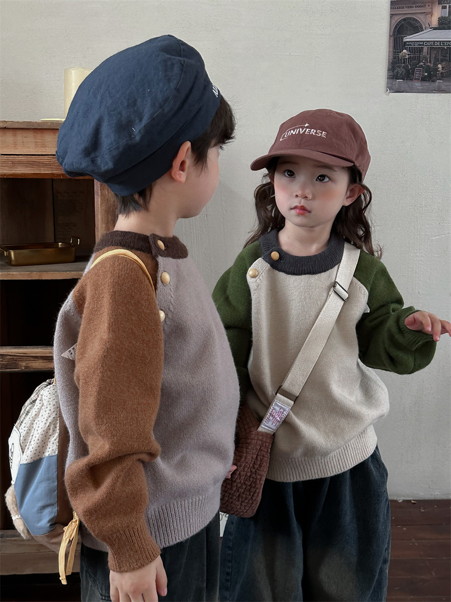 지아예 어린이 제품 2025년 겨울 신상품 래글런 슬리브 스웨터 남녀 아기용 라운드넥 루즈핏 따뜻한 상의스토어 가기