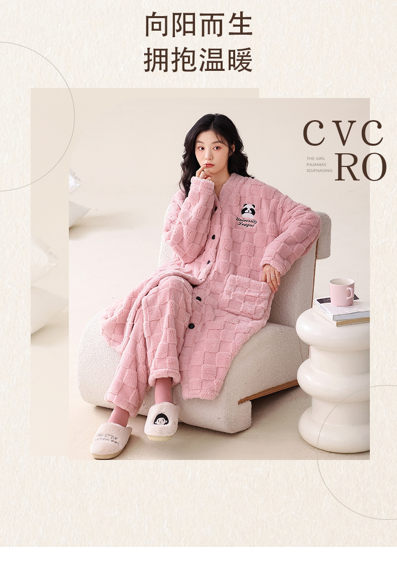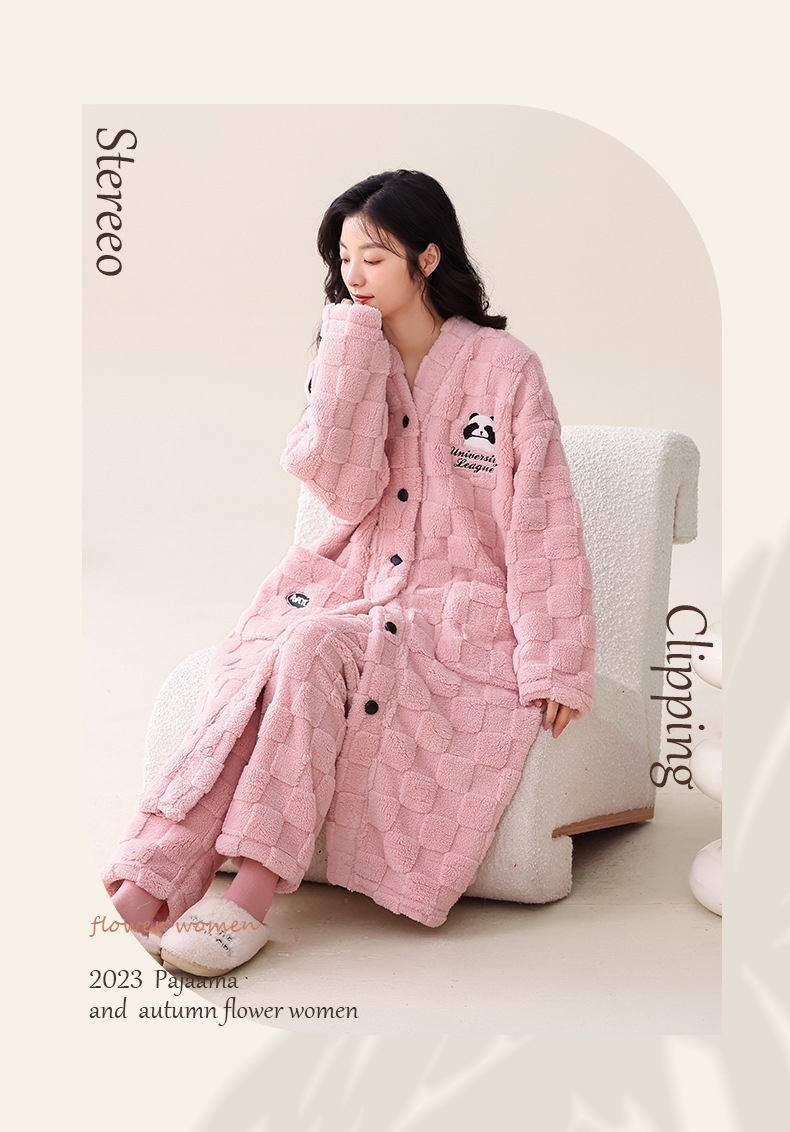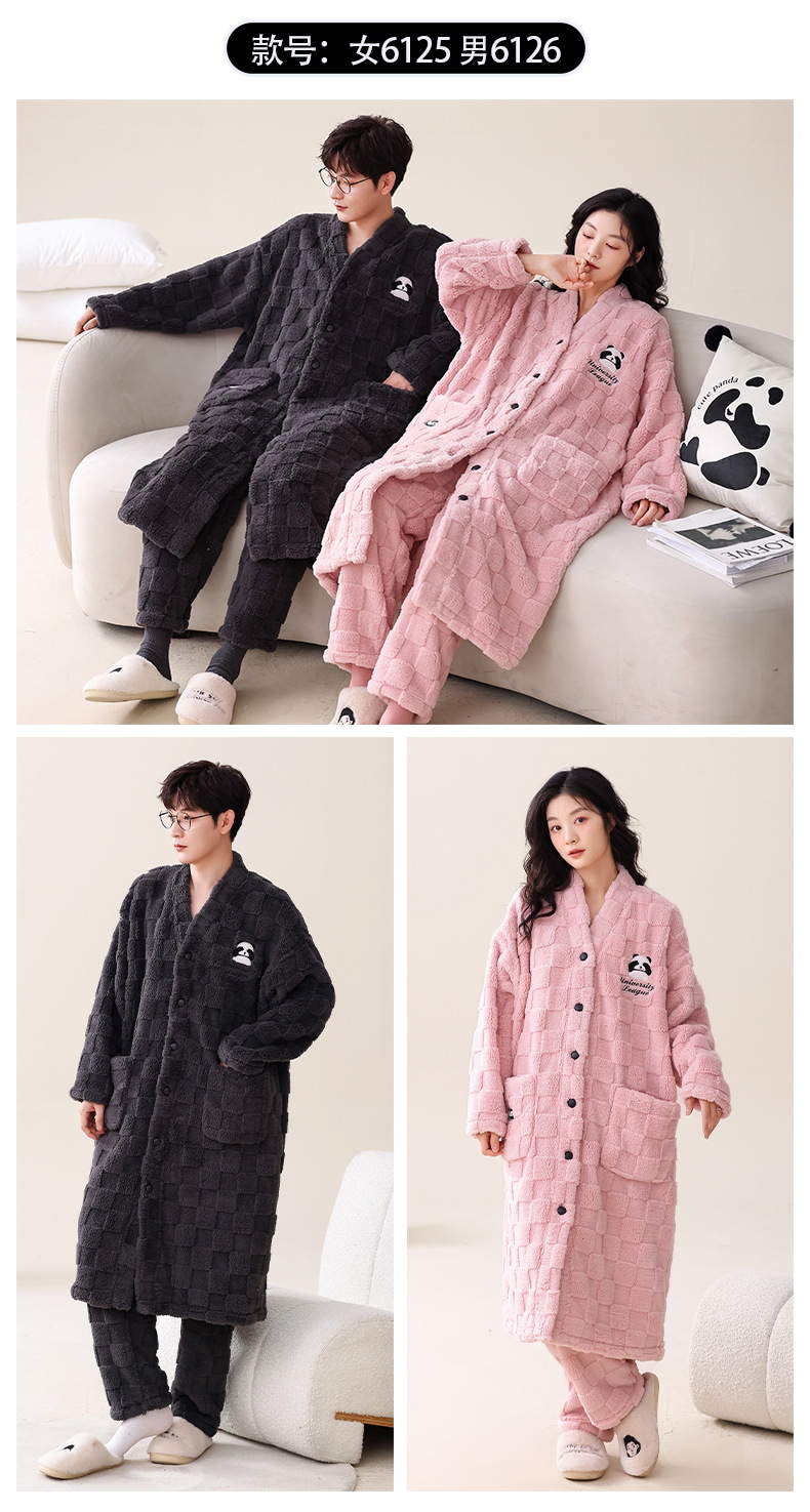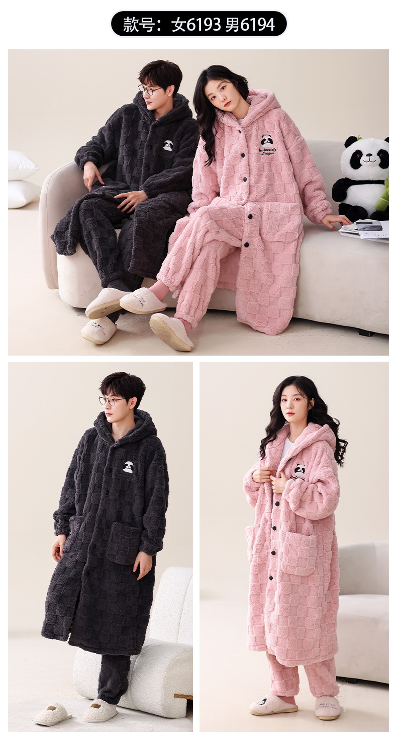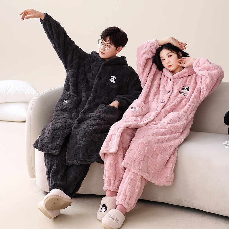 산호 양털 커플 잠옷 여자의 가을과 겨울 잠옷 남자의 긴 기모 두꺼운 목욕 가운 플란넬 귀여운 세트