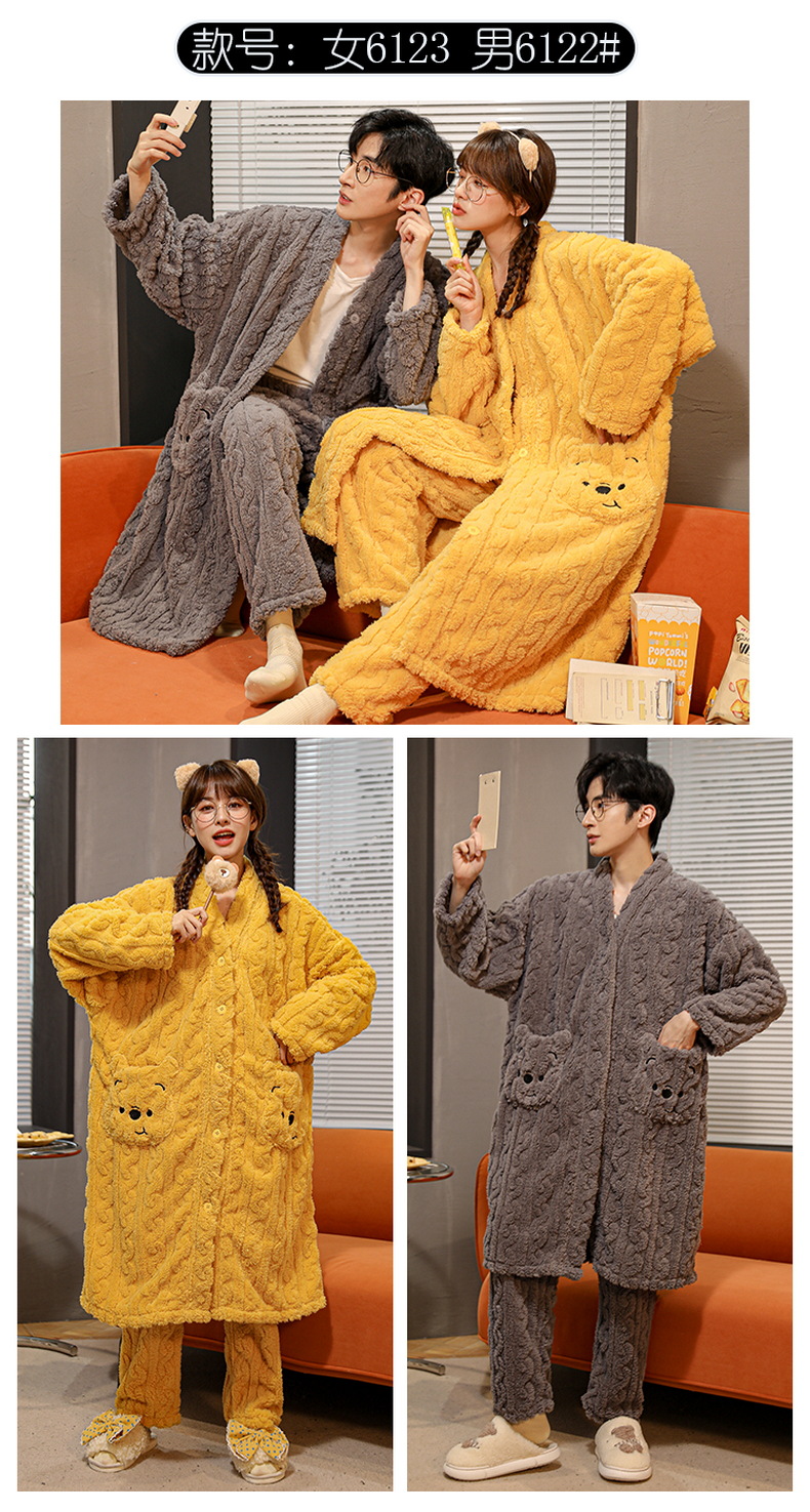 산호 양털 커플 잠옷 여자의 가을과 겨울 잠옷 남자의 긴 기모 두꺼운 목욕 가운 플란넬 귀여운 세트스토어 가기
