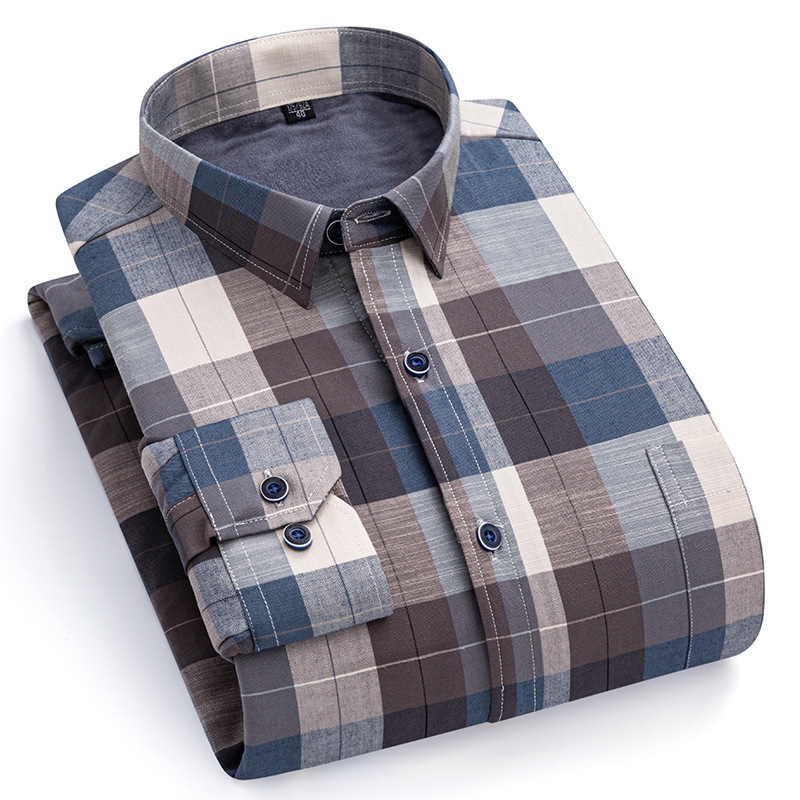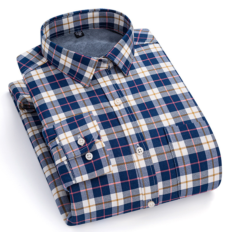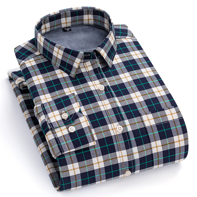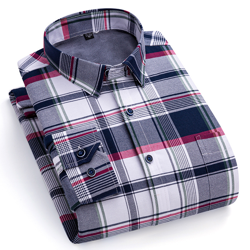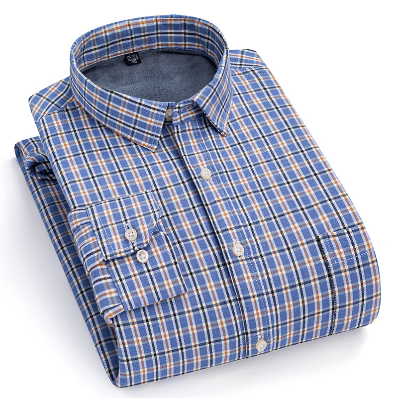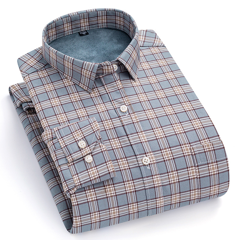 대외 무역 국경 남자 겨울 따뜻한 기모 셔츠 남자 캐주얼 격자 무늬 플러스 사이즈 옥스포드 면 두꺼운 셔츠