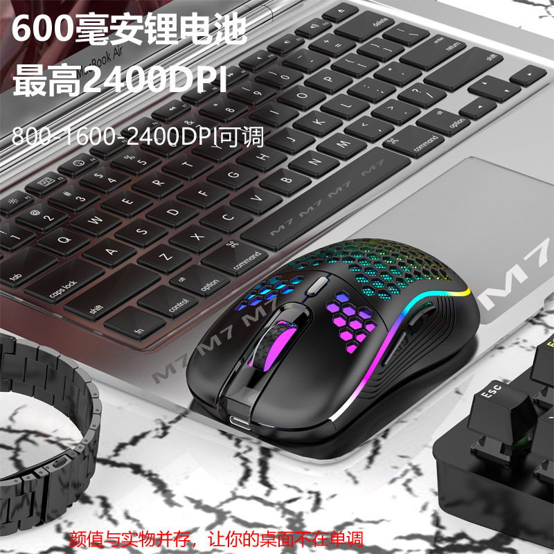 2.4g 무선 동굴 마우스 경량 게임 마우스 발광 7 색 호흡등 크로스 보더 컴퓨터 액세서리