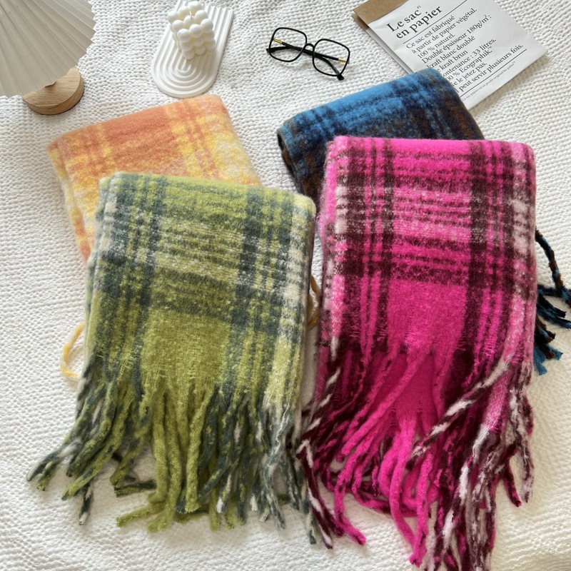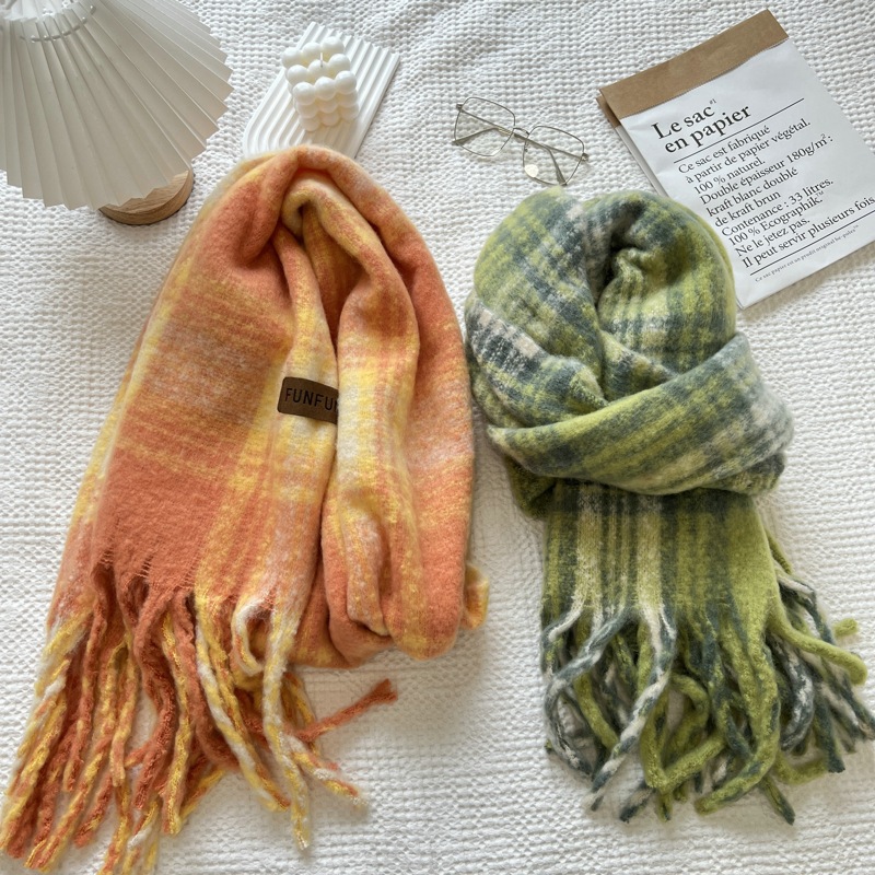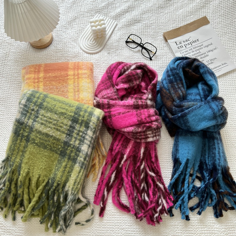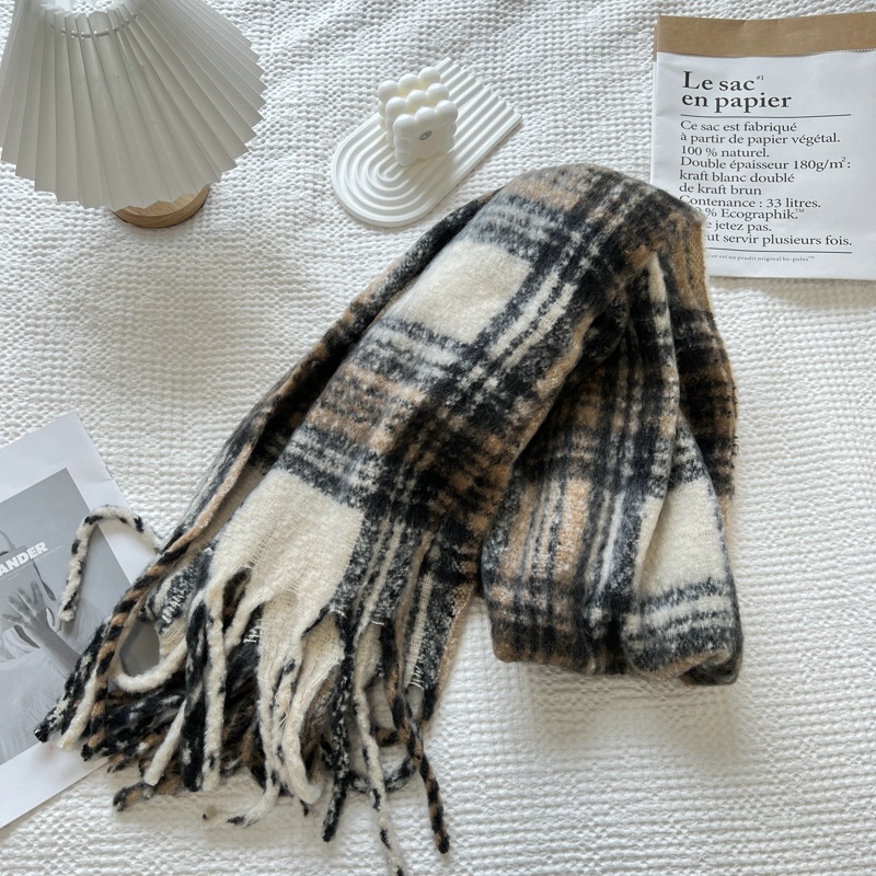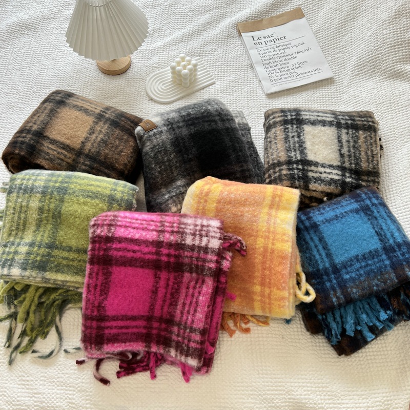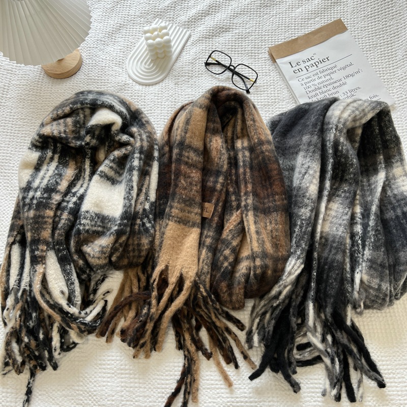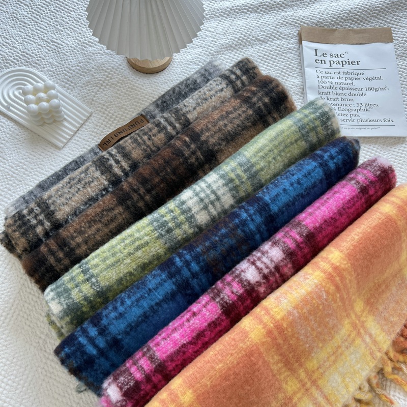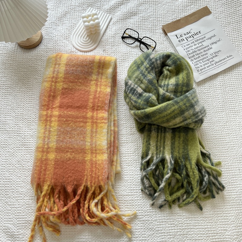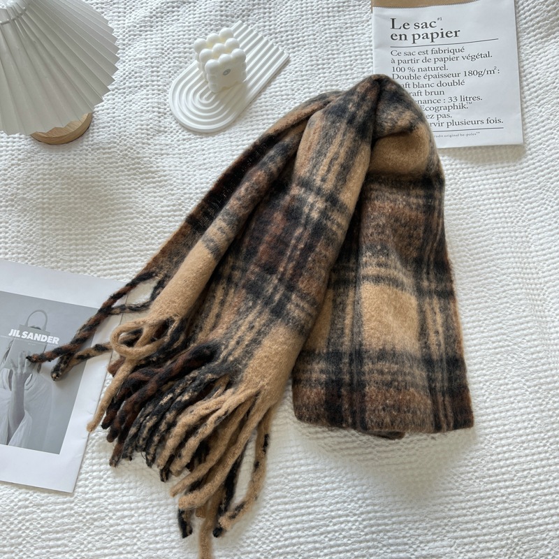 가을과 겨울 분위기 복고풍 긴 패션 남성과 여성의 격자 무늬 스카프 한국 스타일 따뜻한 여성 학생 숄 커플스토어 가기
