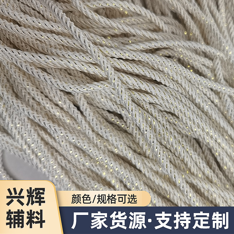 공장 재고 도매 4cm 레이온 플랫 골드 로프 꼰 골드 실크 탄성 로프 플래시 로프스토어 가기