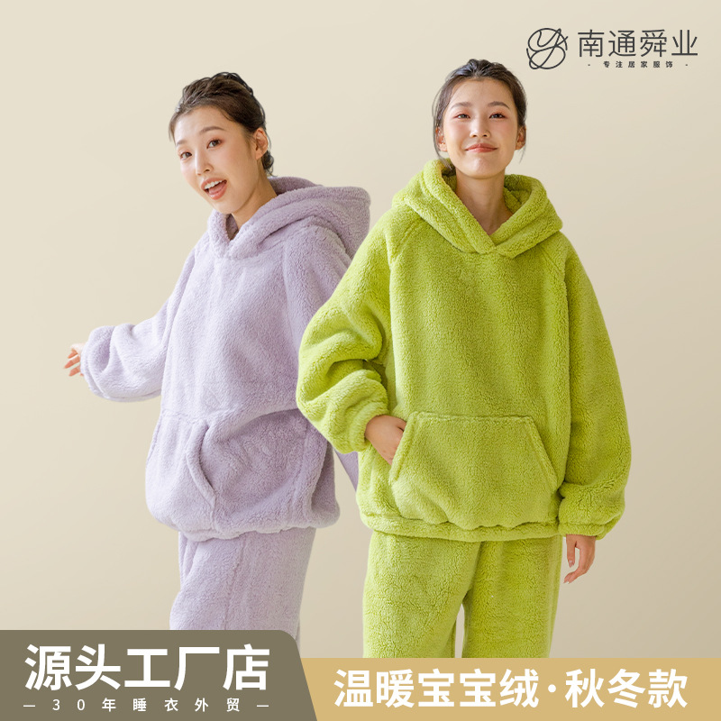 산호 양털 잠옷 여자의 가을과 겨울 홈 세트 단색 두꺼운 따뜻한 커플의 부드러운 느슨한 가정 옷스토어 가기