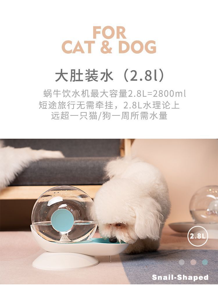 작은 신선한 달팽이 물 디스펜서 애완 동물 자동 급수 대용량 개 고양이 물 디스펜서 공장 콘센트스토어 가기