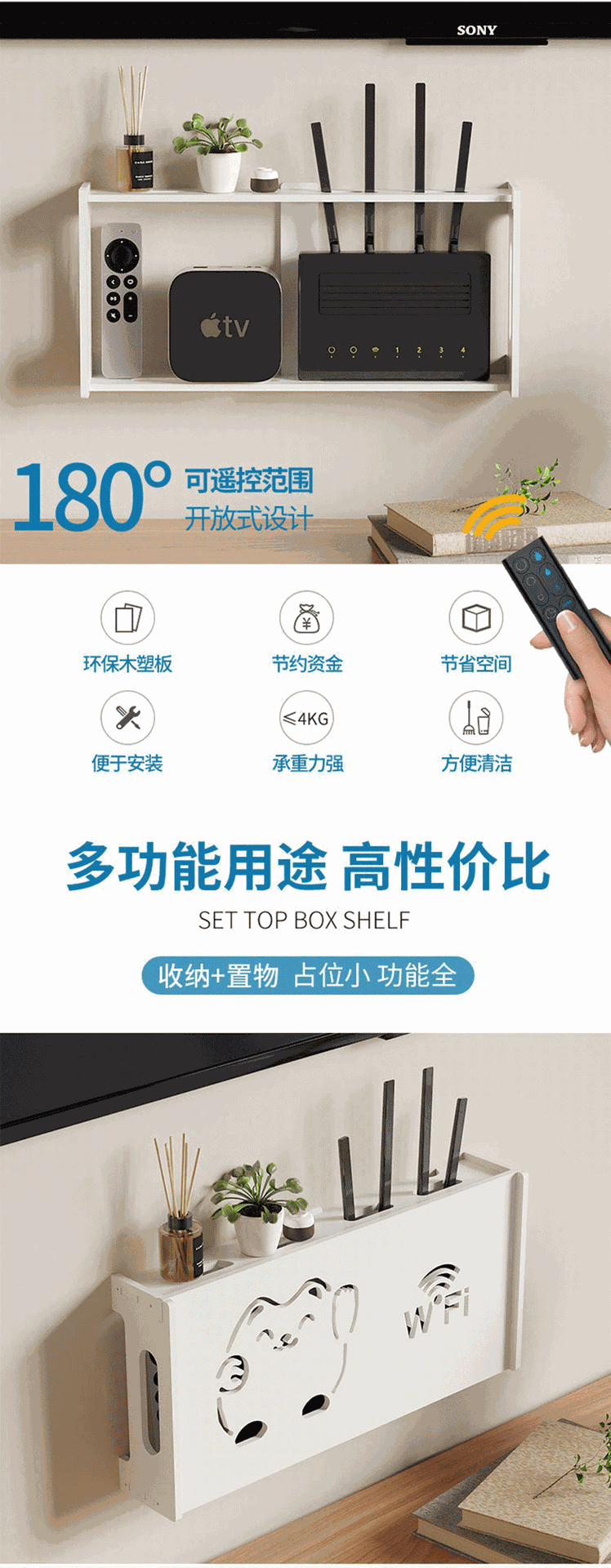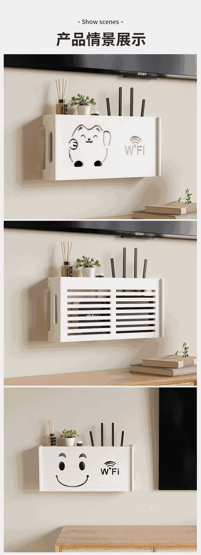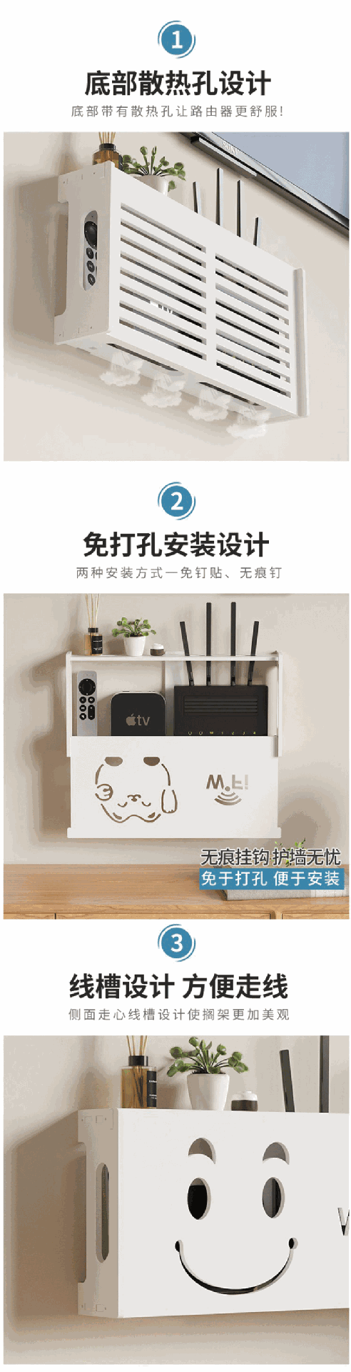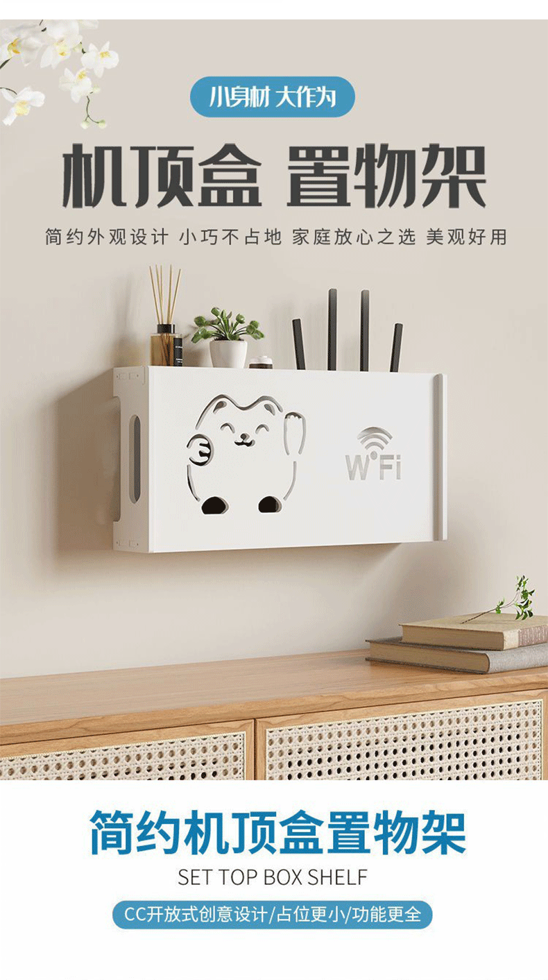 벽걸이형 전선 소켓 커버 박스, 셋톱박스 수납 선반, 벽걸이형 라우터 수납함, 무타공 설치스토어 가기