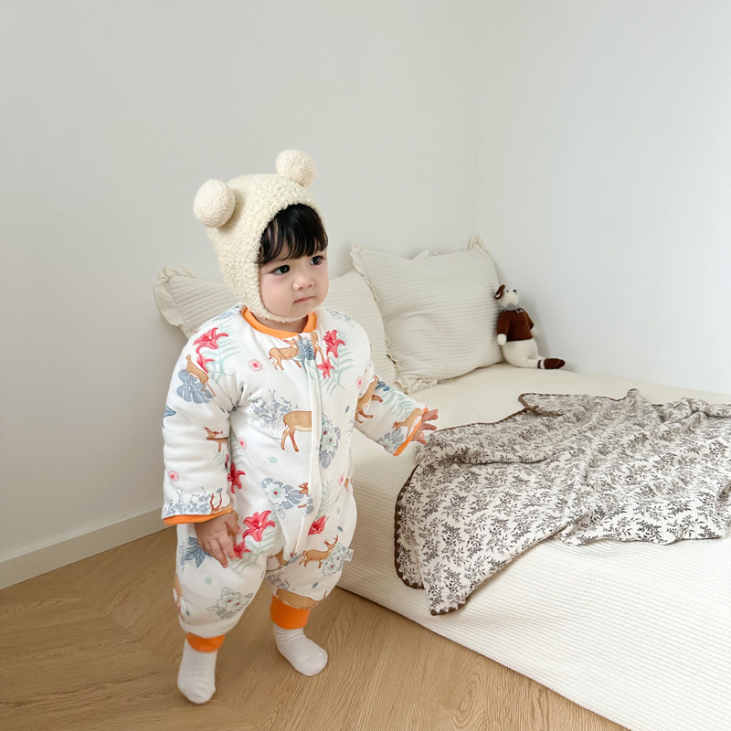 아기 침낭 가을과 겨울 두꺼운면 긴팔 다리 잠옷 소년 소녀 아기 지퍼 다기능 킥 방지 이불스토어 가기