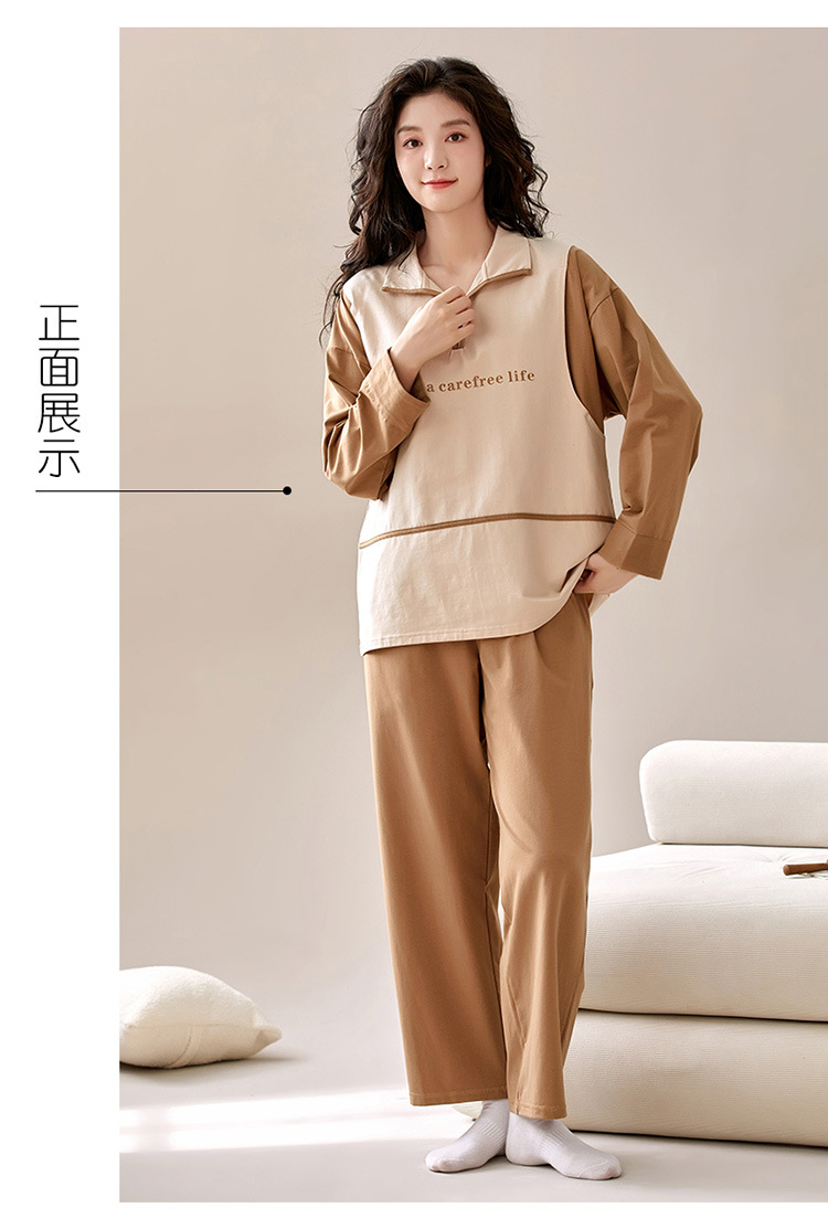 가을과 겨울 새로운 여성의 잠옷 5a 항균 문 옷 사이드 오프닝 모유 수유 의류 긴 소매 브래킷 면 플러스 사이즈 가정 의류