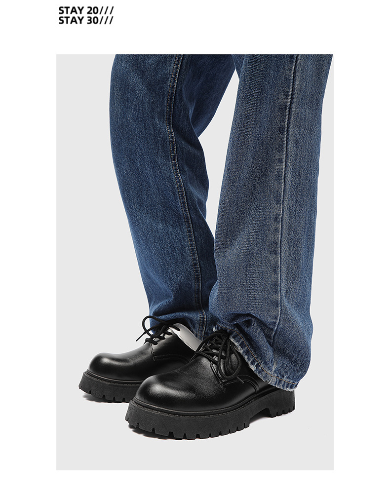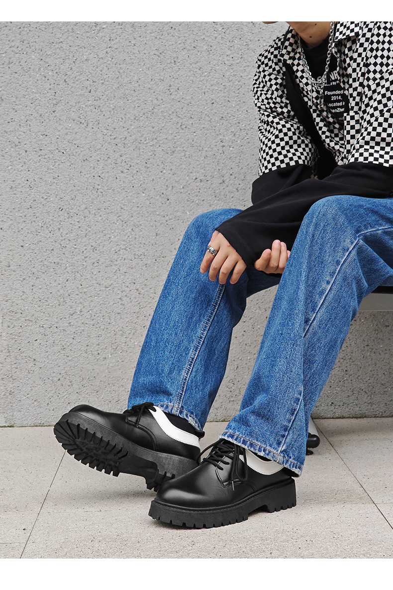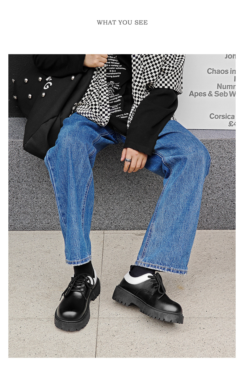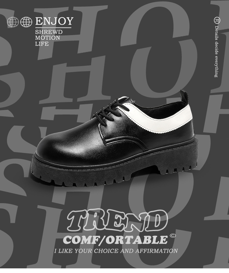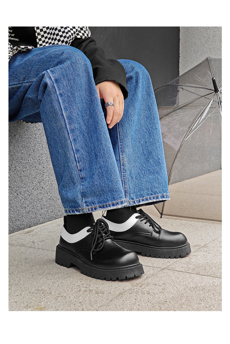 2025 신상 남성 블랙 캐주얼 가죽 신발 빅 헤드 미키 더비 틈새 로우탑 두꺼운 밑창 높이 증가 남성 신발 Z01스토어 가기