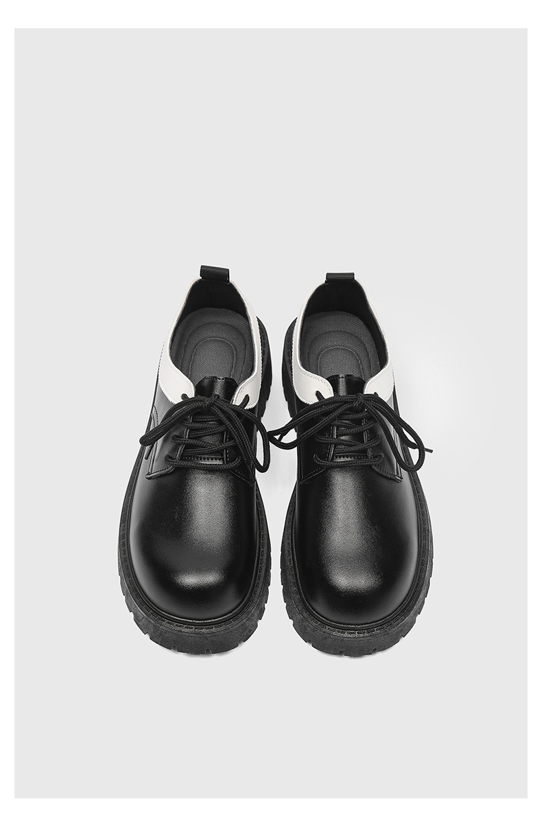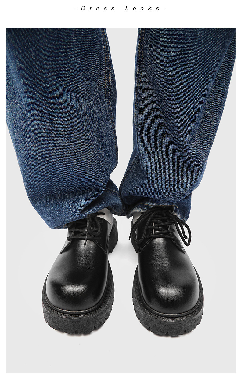 2025 신상 남성 블랙 캐주얼 가죽 신발 빅 헤드 미키 더비 틈새 로우탑 두꺼운 밑창 높이 증가 남성 신발 Z01
