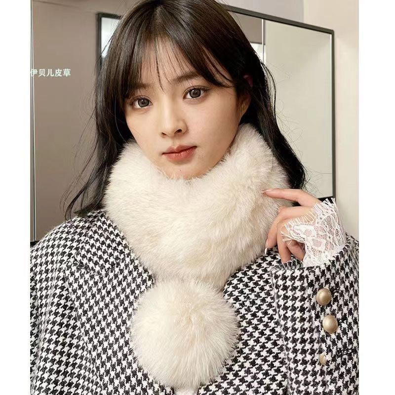 여성용 스카프, 겨울 고급 한국식 가을 겨울 새로운 스타일의 작은 신선한 모피 볼 스카프, 남성용 다용도 두꺼운 따뜻한 숄스토어 가기
