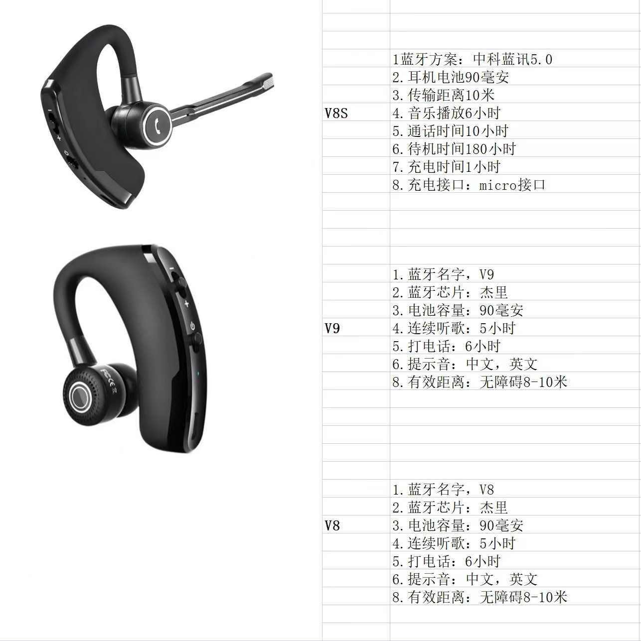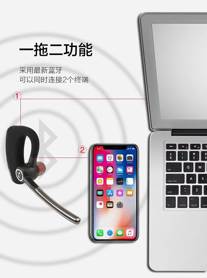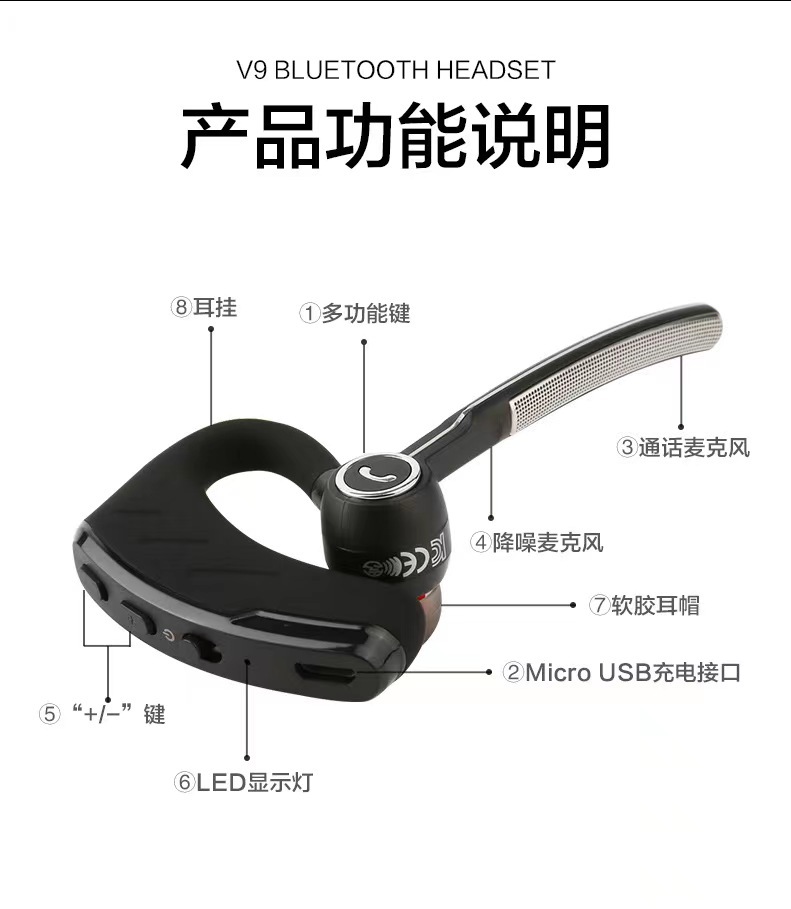 V8S 비즈니스 스테레오 전설 무선 블루투스 헤드셋 귀 매달린 자동차 소음 감소 헤드셋 일방적 인 롱 마크 크로스 보더스토어 가기
