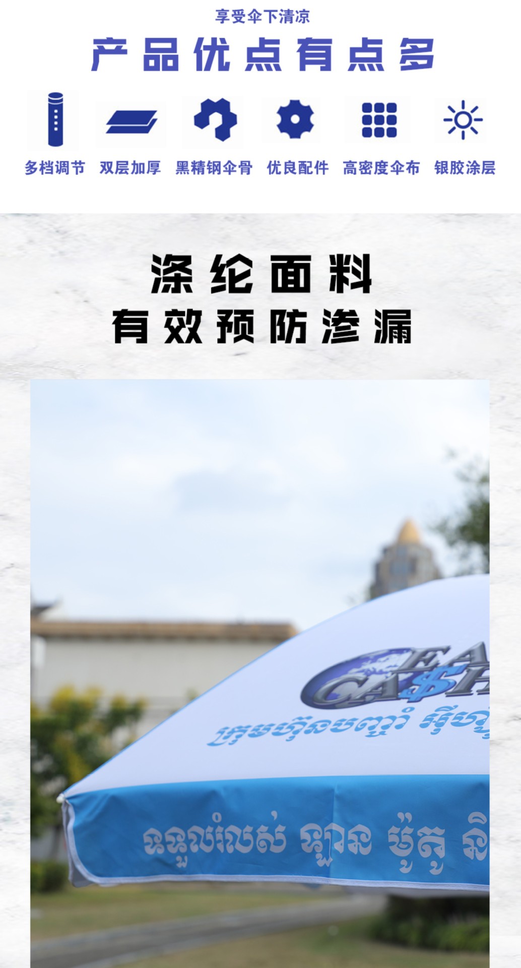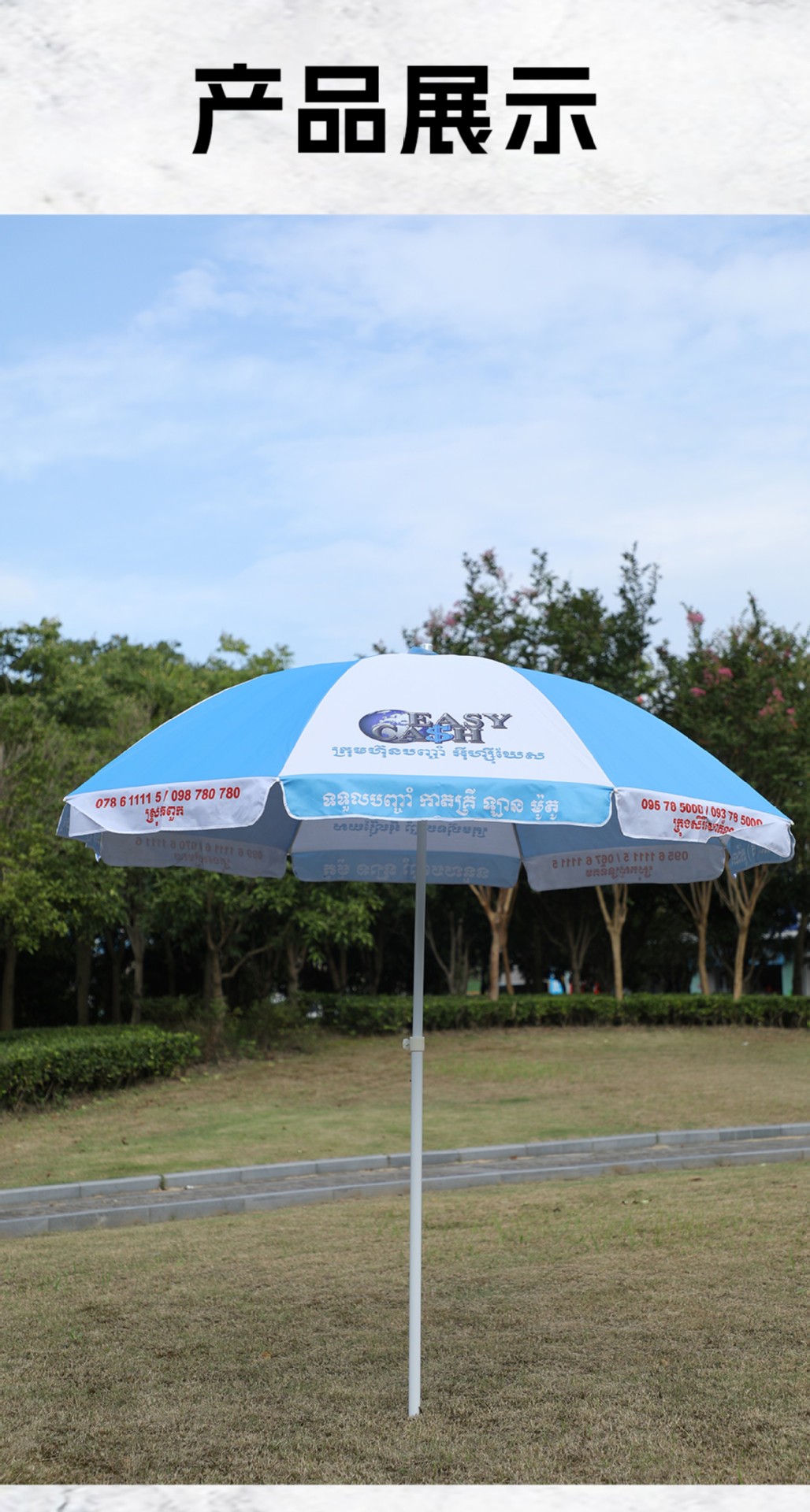 해변 우산 야외 캠핑 차양 공장 태양 보호 차양 대형 정원 우산 인쇄 가능한 로고 광고 우산스토어 가기