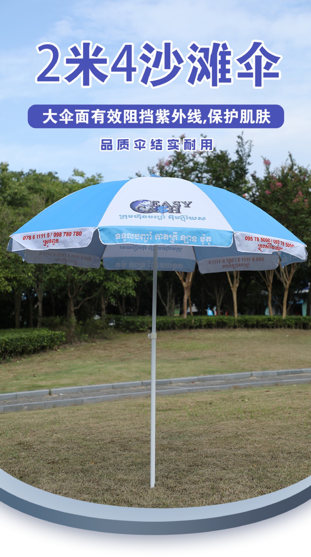 해변 우산 야외 캠핑 차양 공장 태양 보호 차양 대형 정원 우산 인쇄 가능한 로고 광고 우산