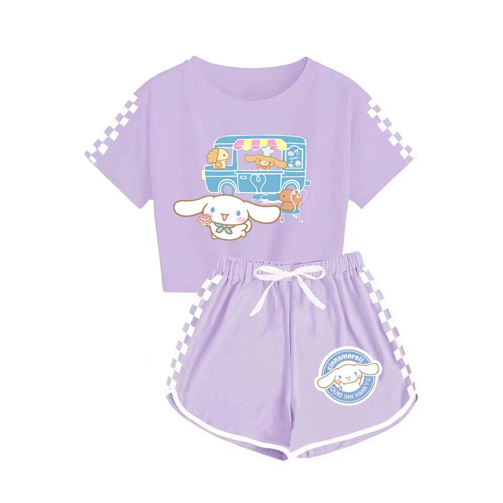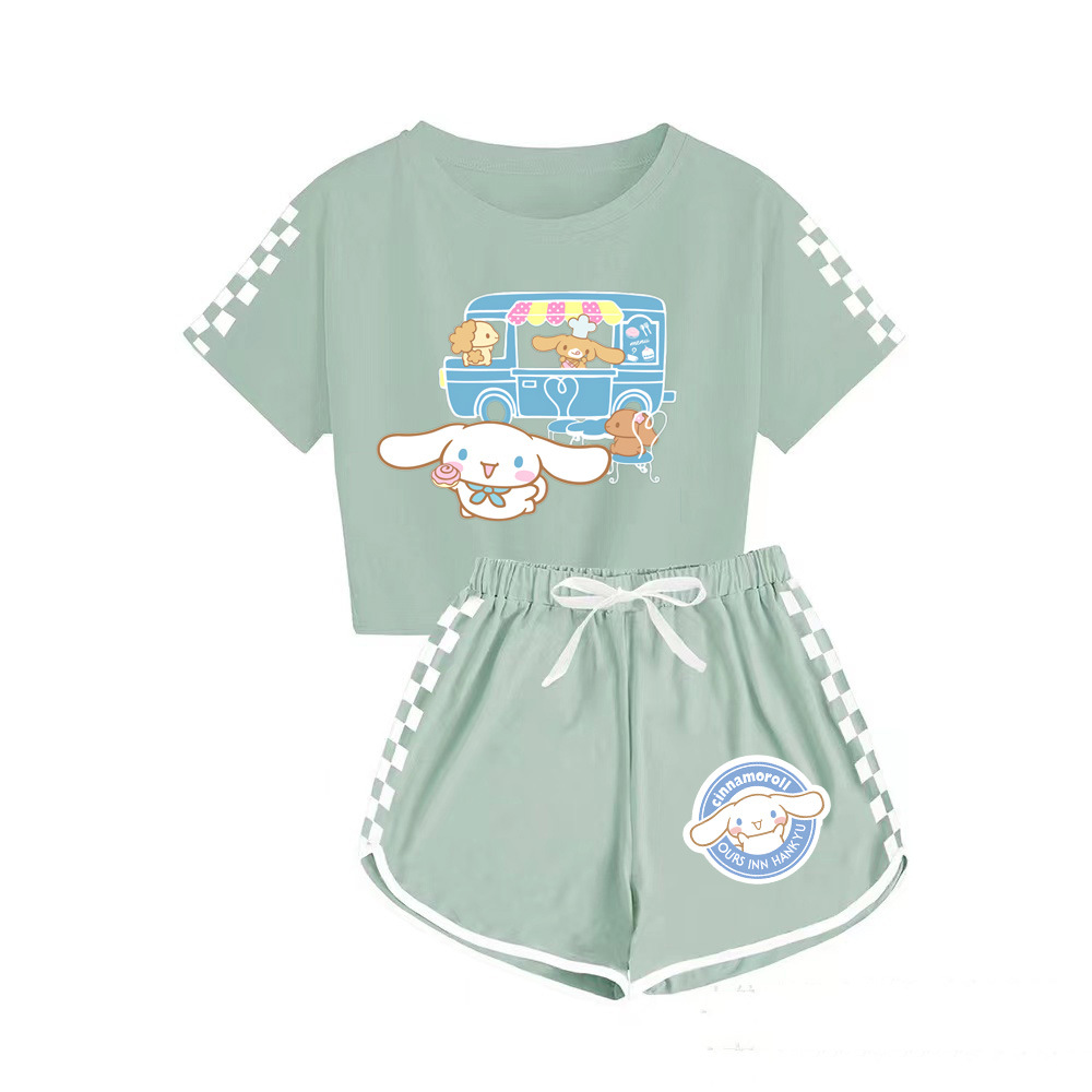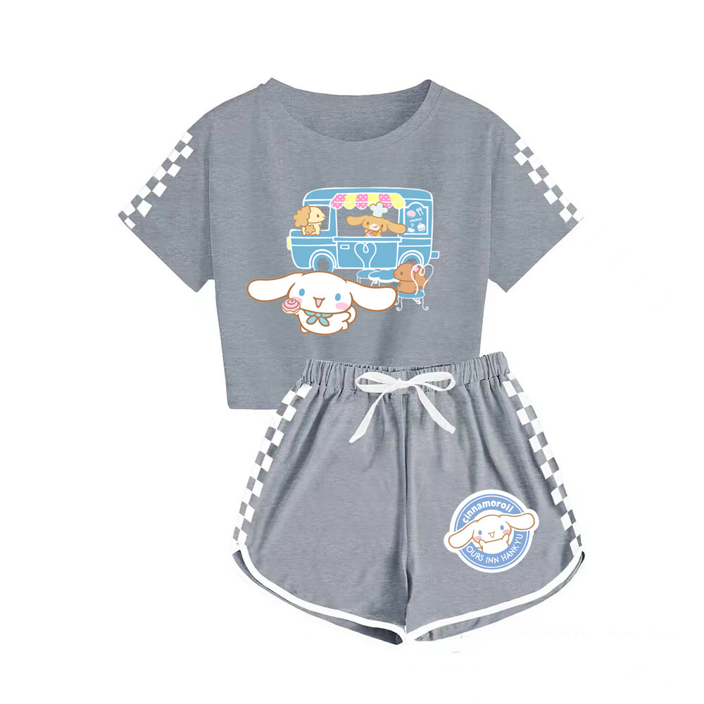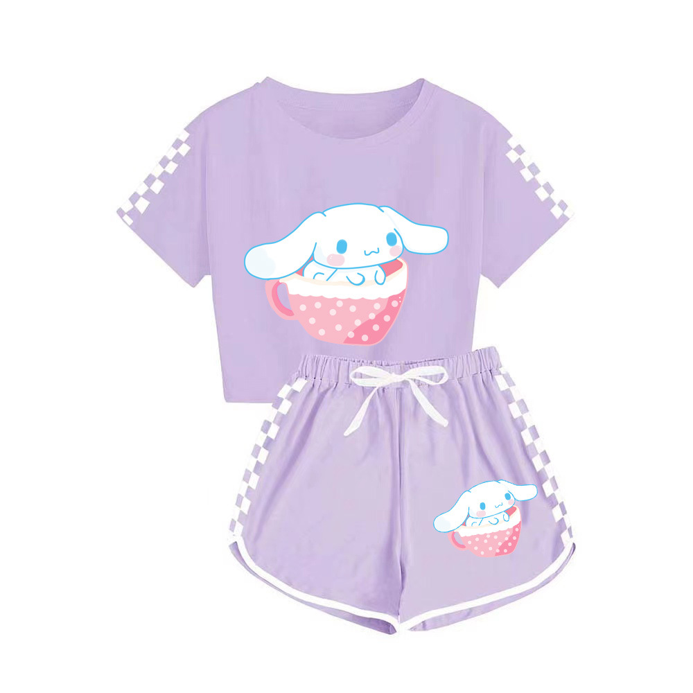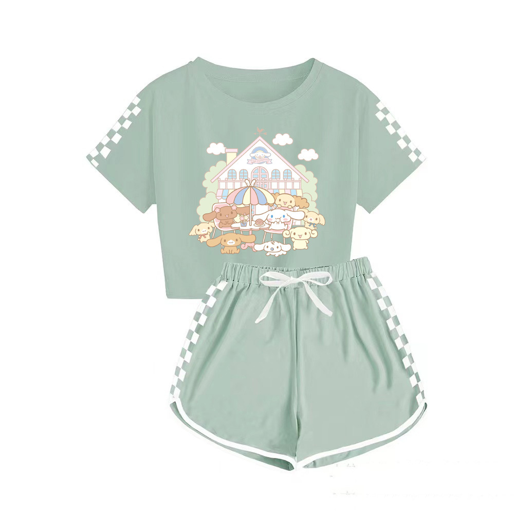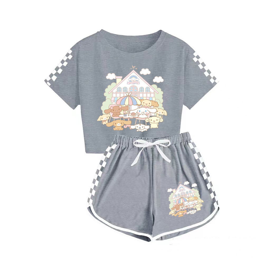 2023 아마존 인기 유귀 개 소년 소녀 티셔츠 반바지 인쇄 스포츠 세트 7520