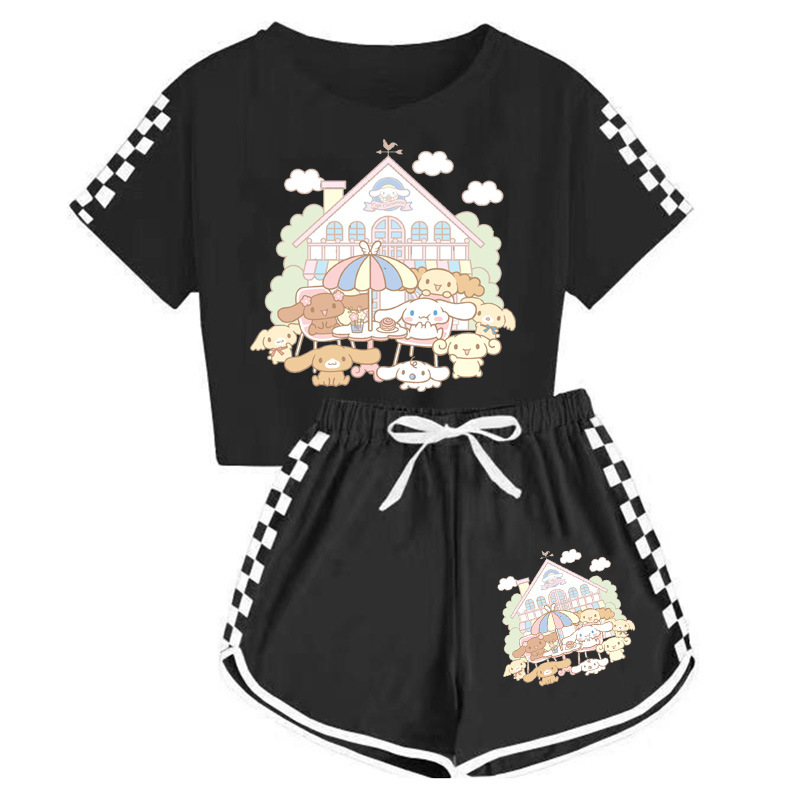 2023 아마존 인기 유귀 개 소년 소녀 티셔츠 반바지 인쇄 스포츠 세트 7520스토어 가기