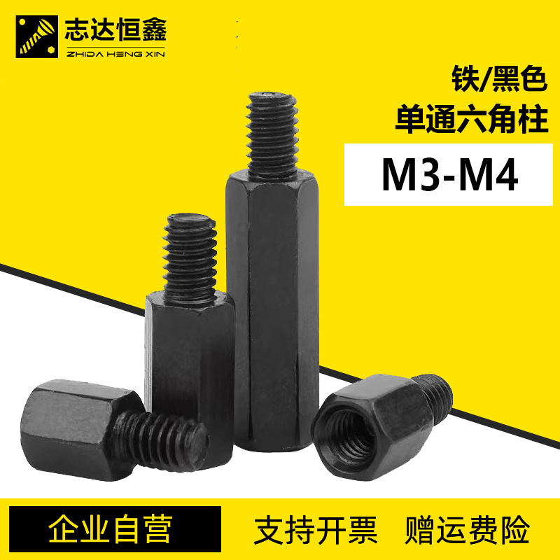 철 검정 육각 철 열 단일 헤드 나사 섀시 연결 열 단일 패스 육각 스터드 절연 열 내부 및 외부 이빨 M3M4스토어 가기
