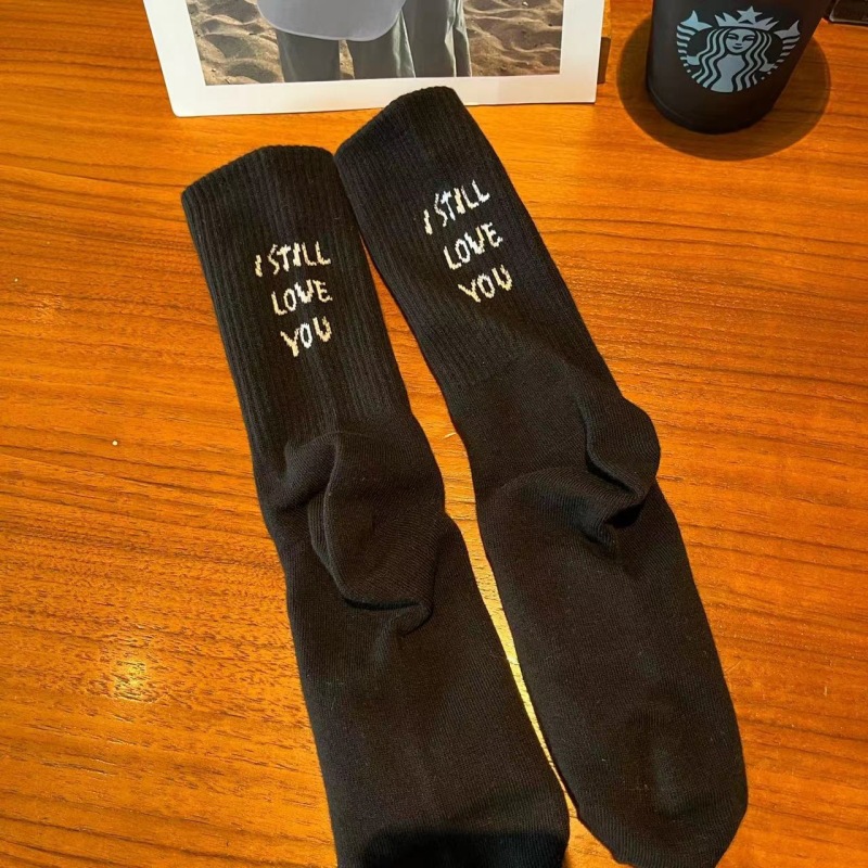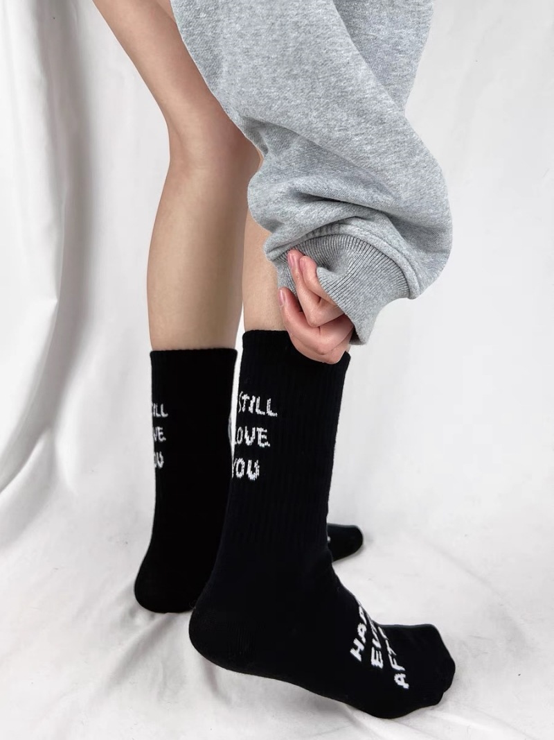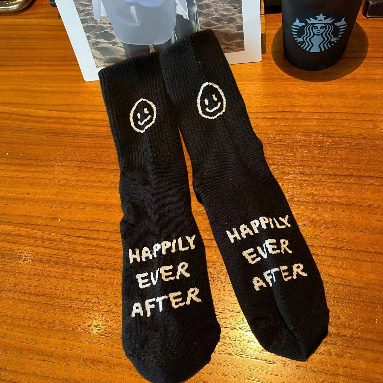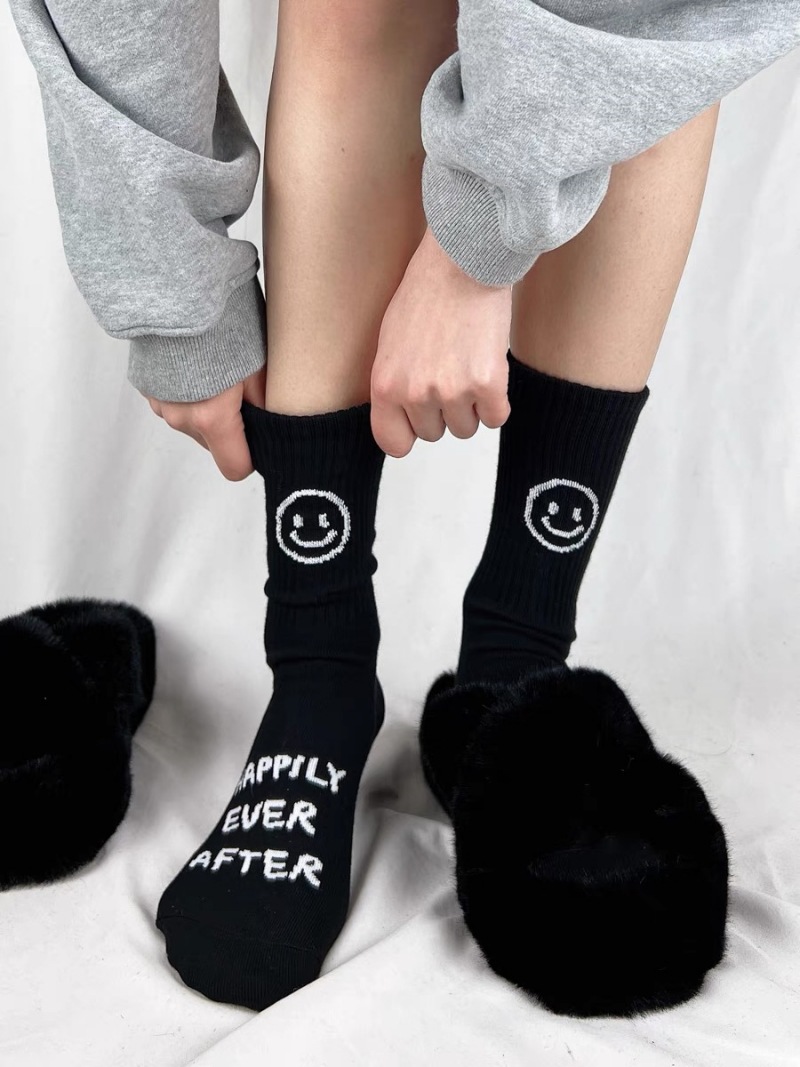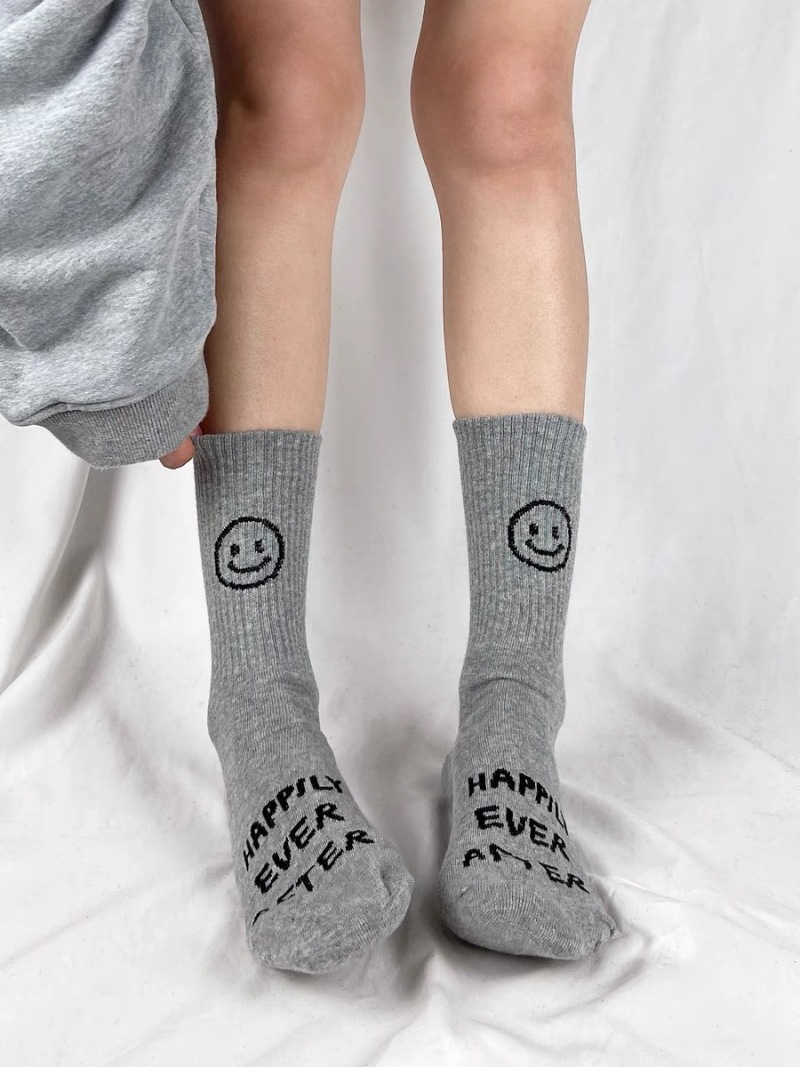 한국 트렌디 쿨 스마일 페이스 힐 편지 캐주얼 스포츠 중간 길이 양말 남성과 여성 사이버 연예인 특유의 순면 양말 스타킹