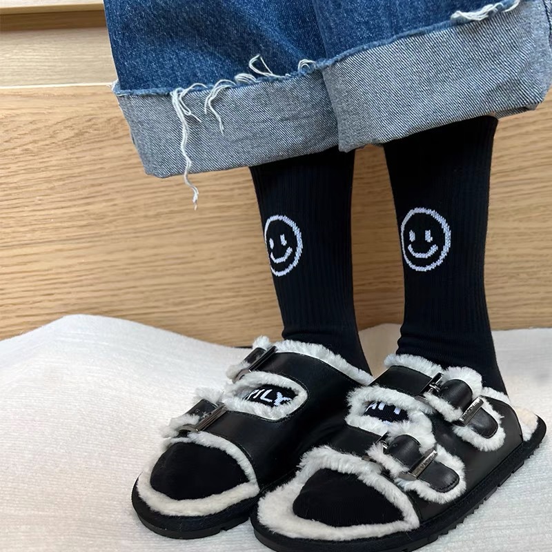 한국 트렌디 쿨 스마일 페이스 힐 편지 캐주얼 스포츠 중간 길이 양말 남성과 여성 사이버 연예인 특유의 순면 양말 스타킹스토어 가기