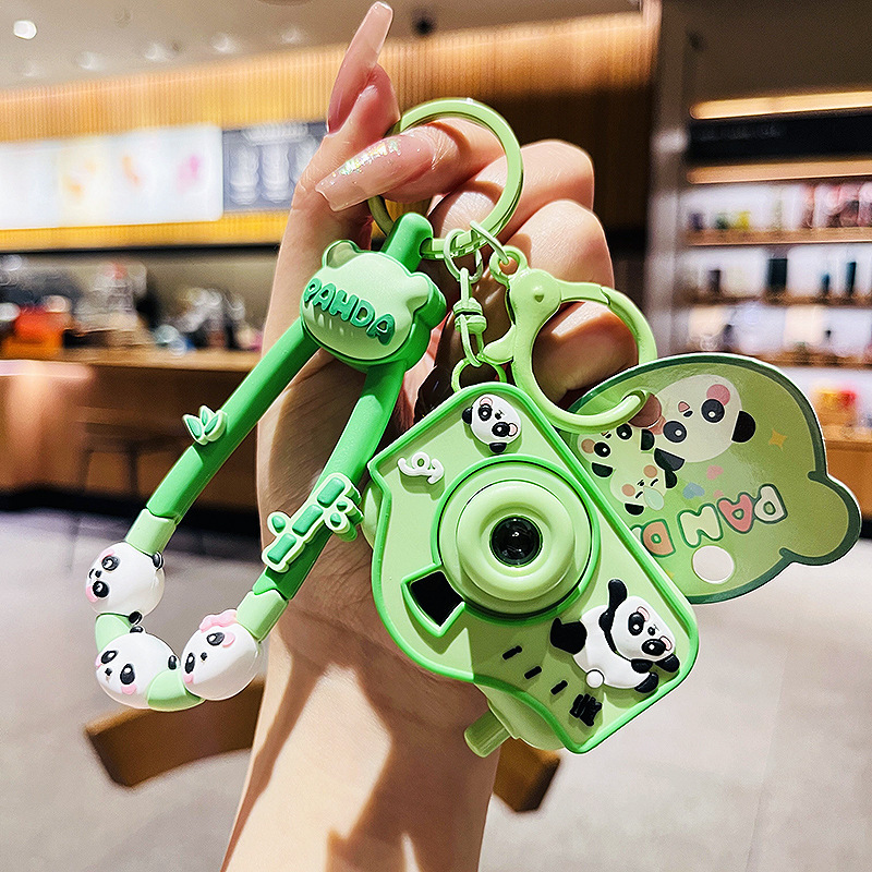 귀여운 팬더 팬더 프로젝션 카메라 키 체인 펜던트 귀여운 만화 빛나는 학교 가방 펜던트 작은 선물스토어 가기