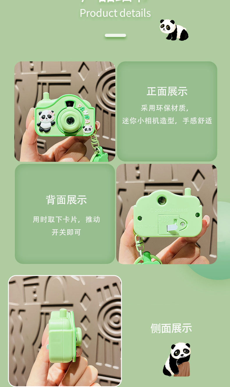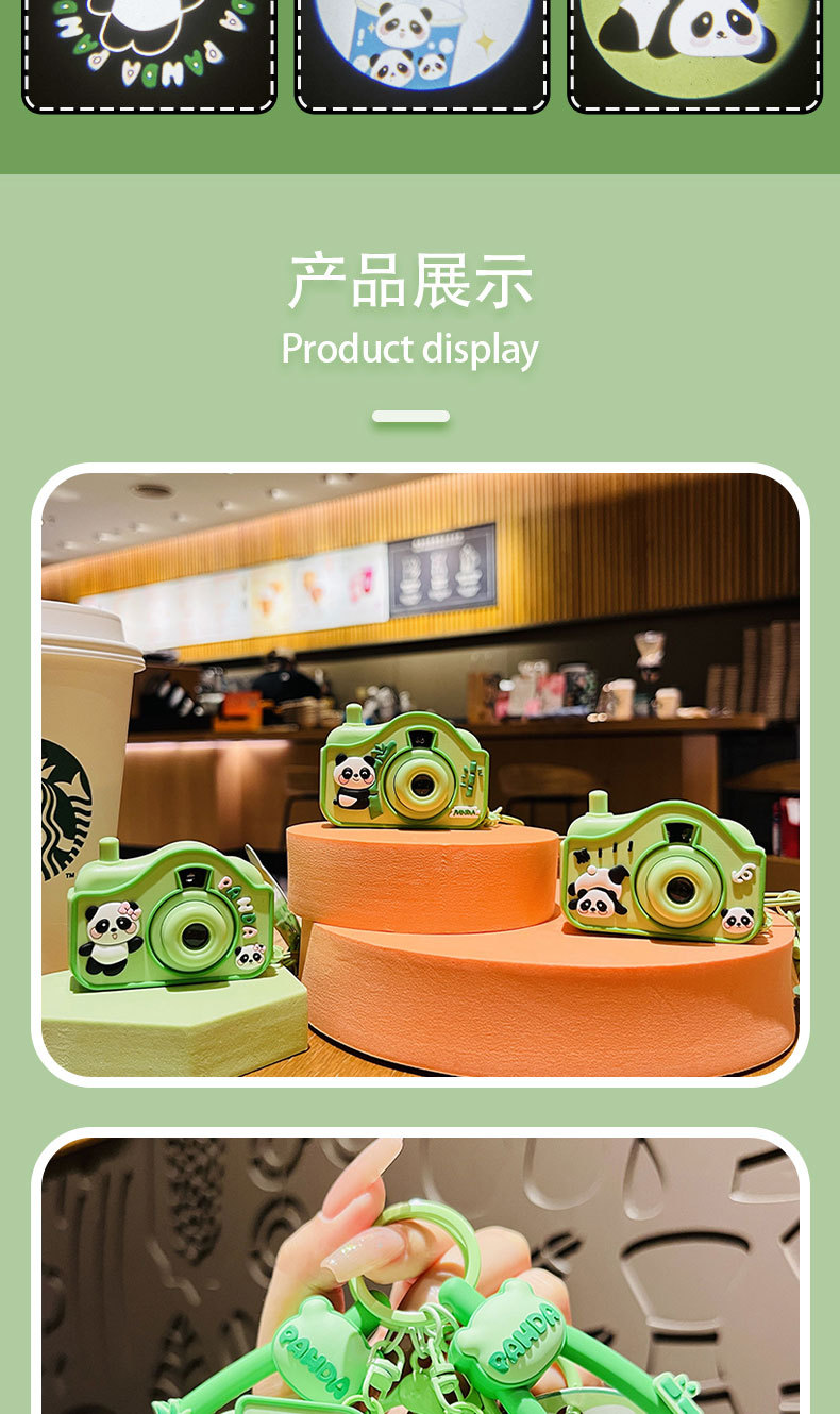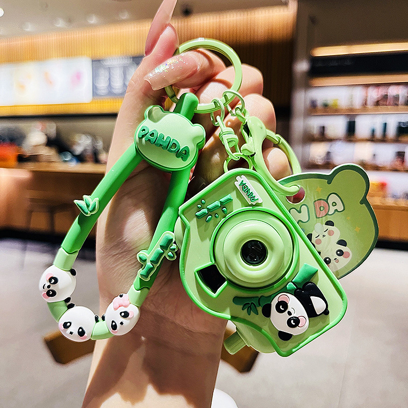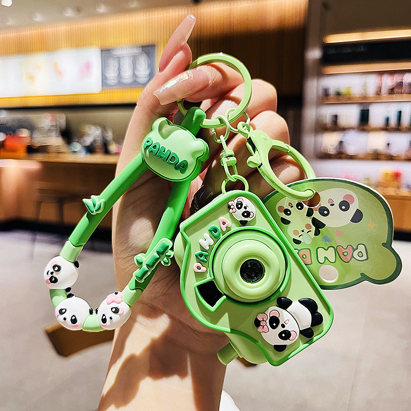 귀여운 팬더 팬더 프로젝션 카메라 키 체인 펜던트 귀여운 만화 빛나는 학교 가방 펜던트 작은 선물
