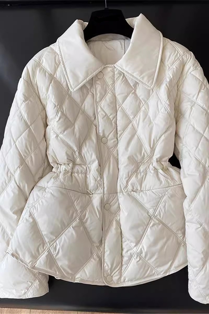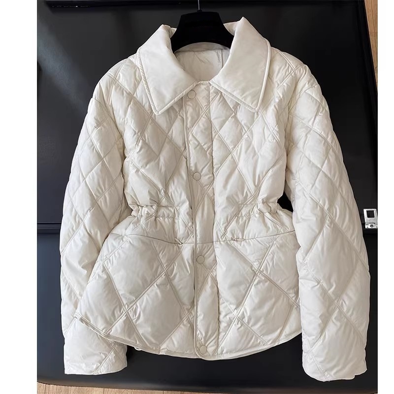 강력한 신상품! 레트로한 마름모 무늬의 라펠 디자인과 허리 조절 기능이 있는 가볍고 짧은 여성용 다운 코튼 재킷, 가을 겨울용스토어 가기