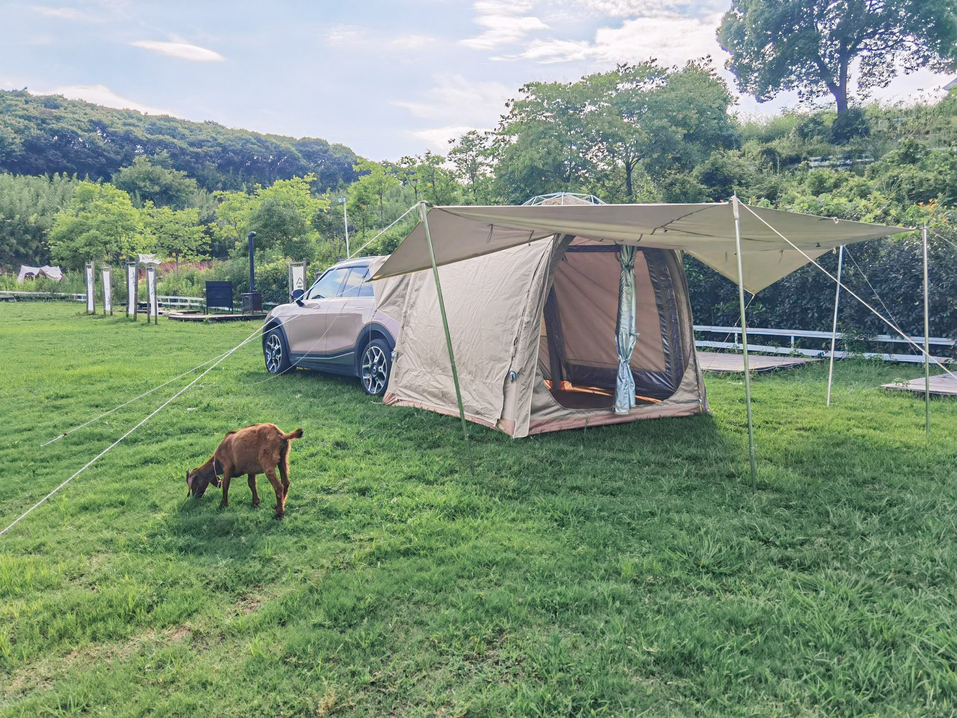 쿨 블루 야외 자율주행 투어 Tesla 자동차 후면 연장 텐트 자동차 사이드 텐트 연장 스카이 커튼 프론트 홀 SUV 텐트