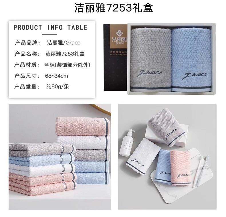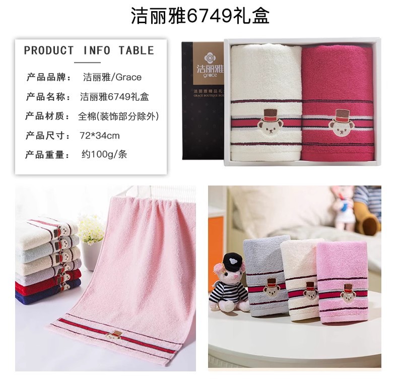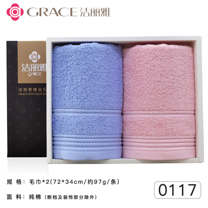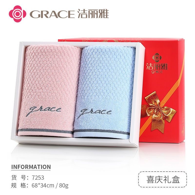 Jielia 수건 면 두 선물 상자 세트 결혼식 동행 식 생일 직원 복지 회사 그룹 구매 수건스토어 가기