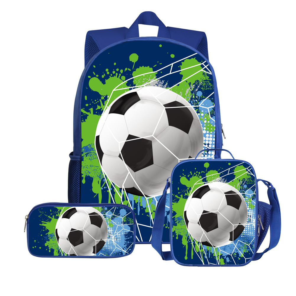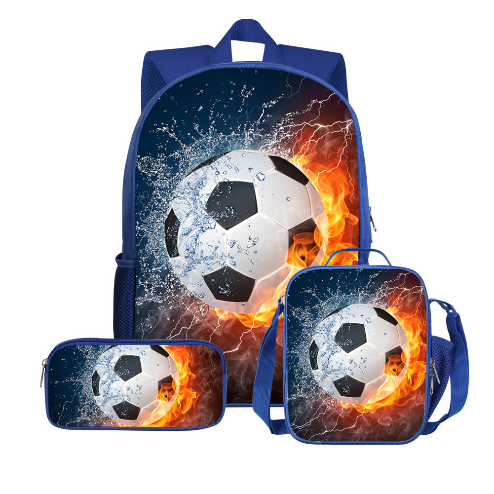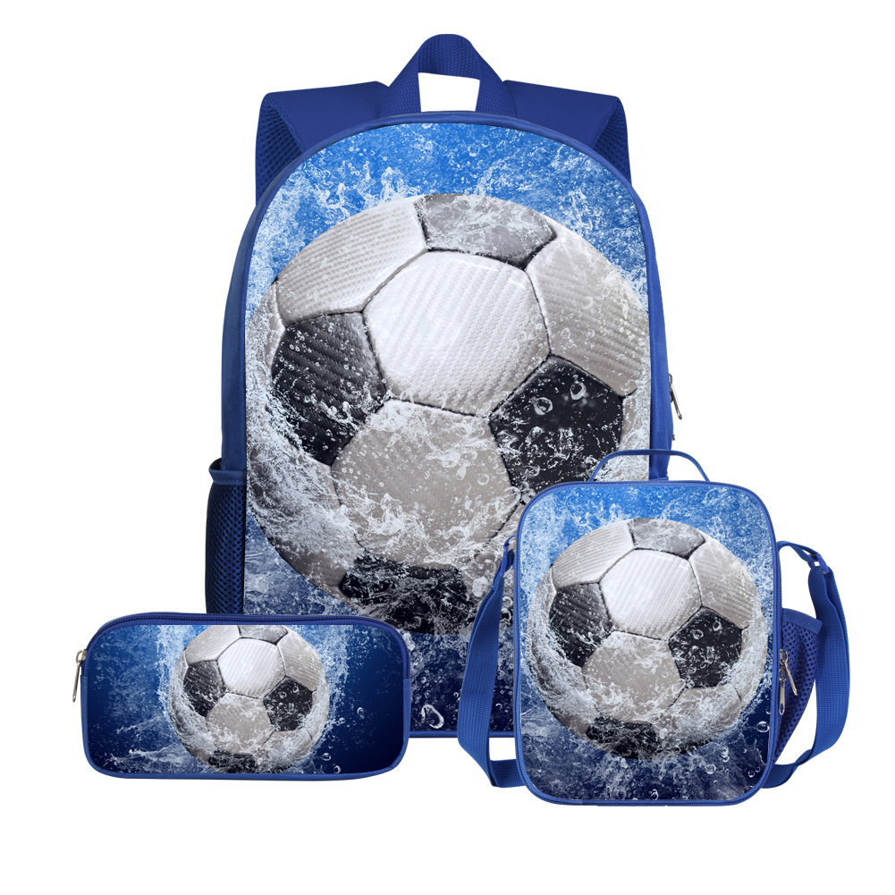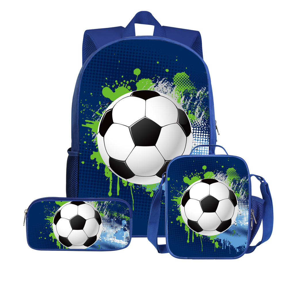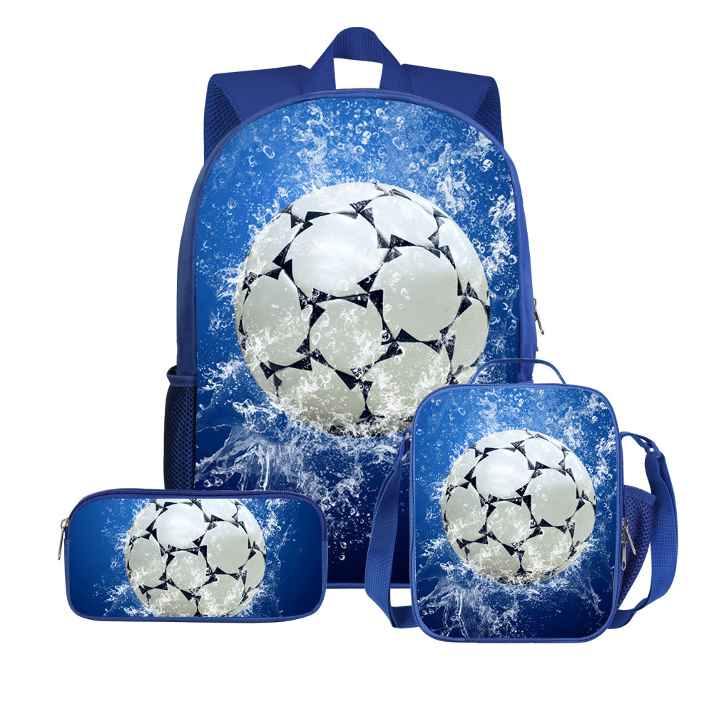 篮球足球印花时尚减负学生小单肩包双肩包笔袋三件套套装一件代发