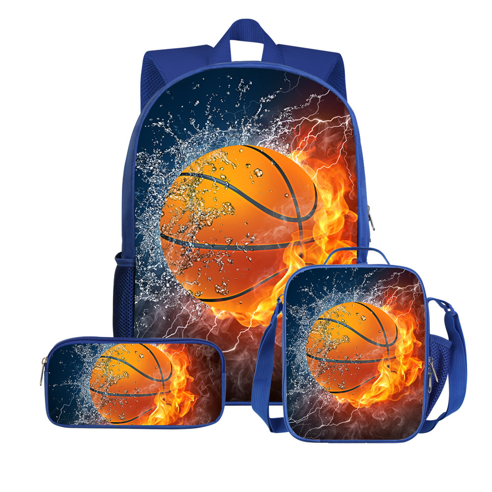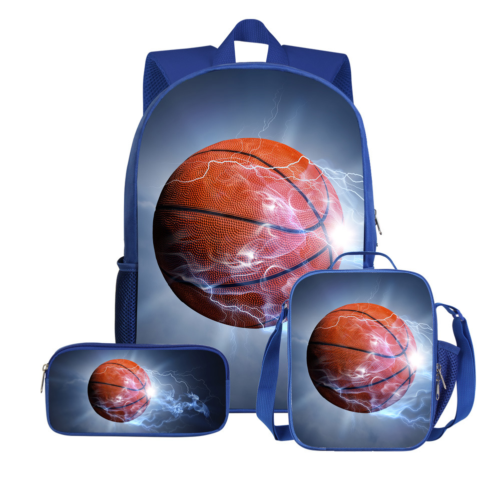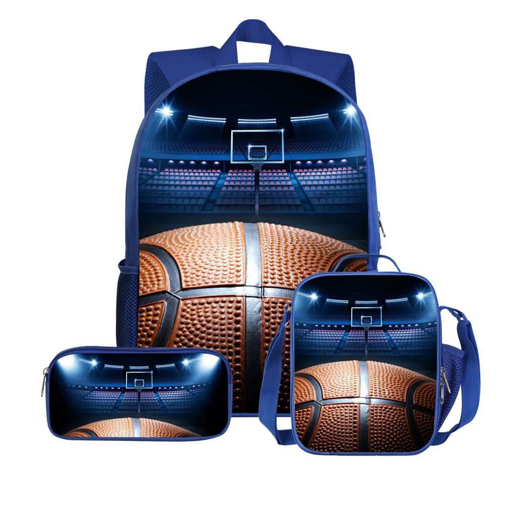 농구 축구 인쇄 패션 부담 감소 학생 작은 어깨 가방 배낭 연필 케이스 3 조각 세트 머리카락 세대