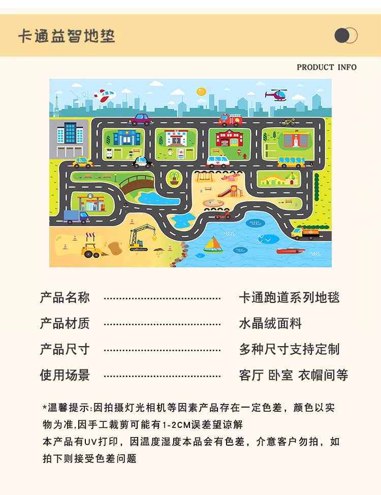 만화 런웨이 카펫 가정용 침실 방오 침대 옆 담요 주차장 도로 게임 매트 크로스보더 미끄럼 방지 발매트