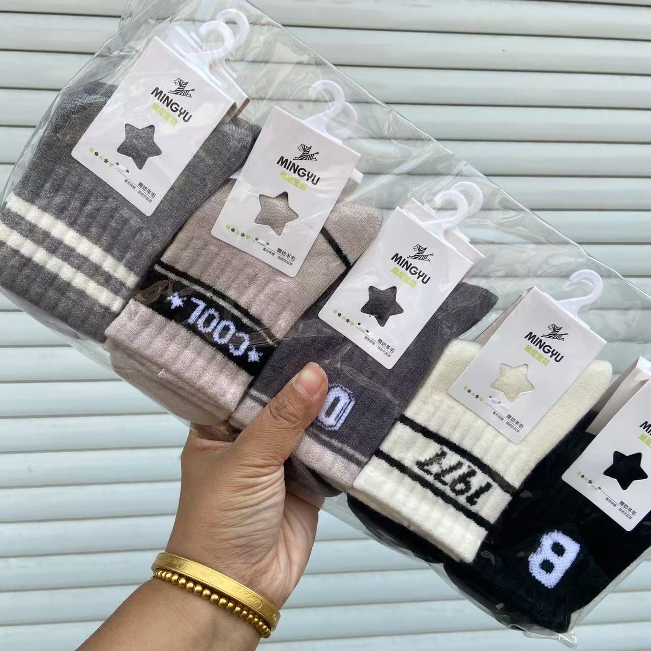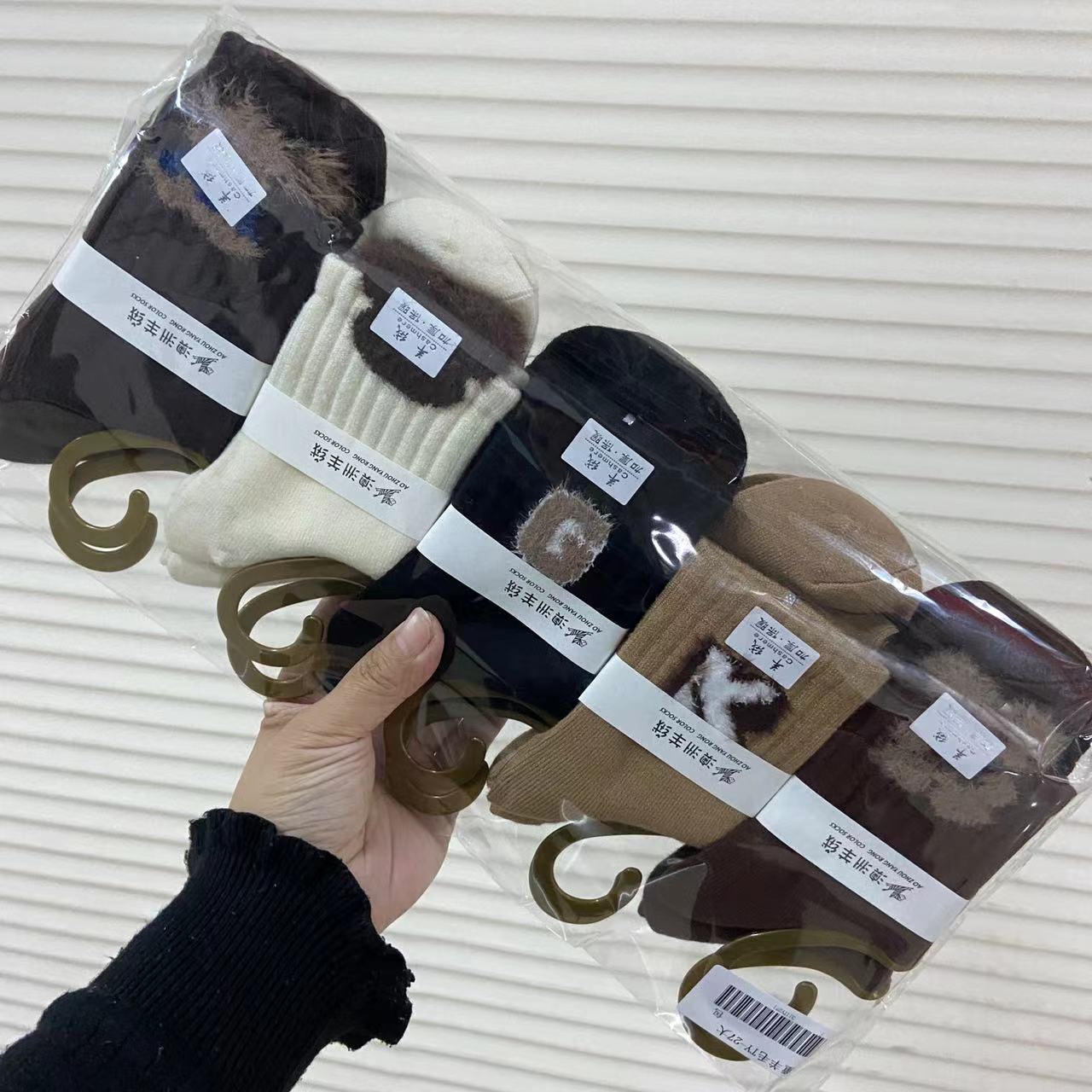 가을과 겨울 소년과 소녀를위한 새로운 어린이 캐시미어 양말 초등학교 어린이를위한 만화 편지 아기 양말 따뜻한 양말 단색