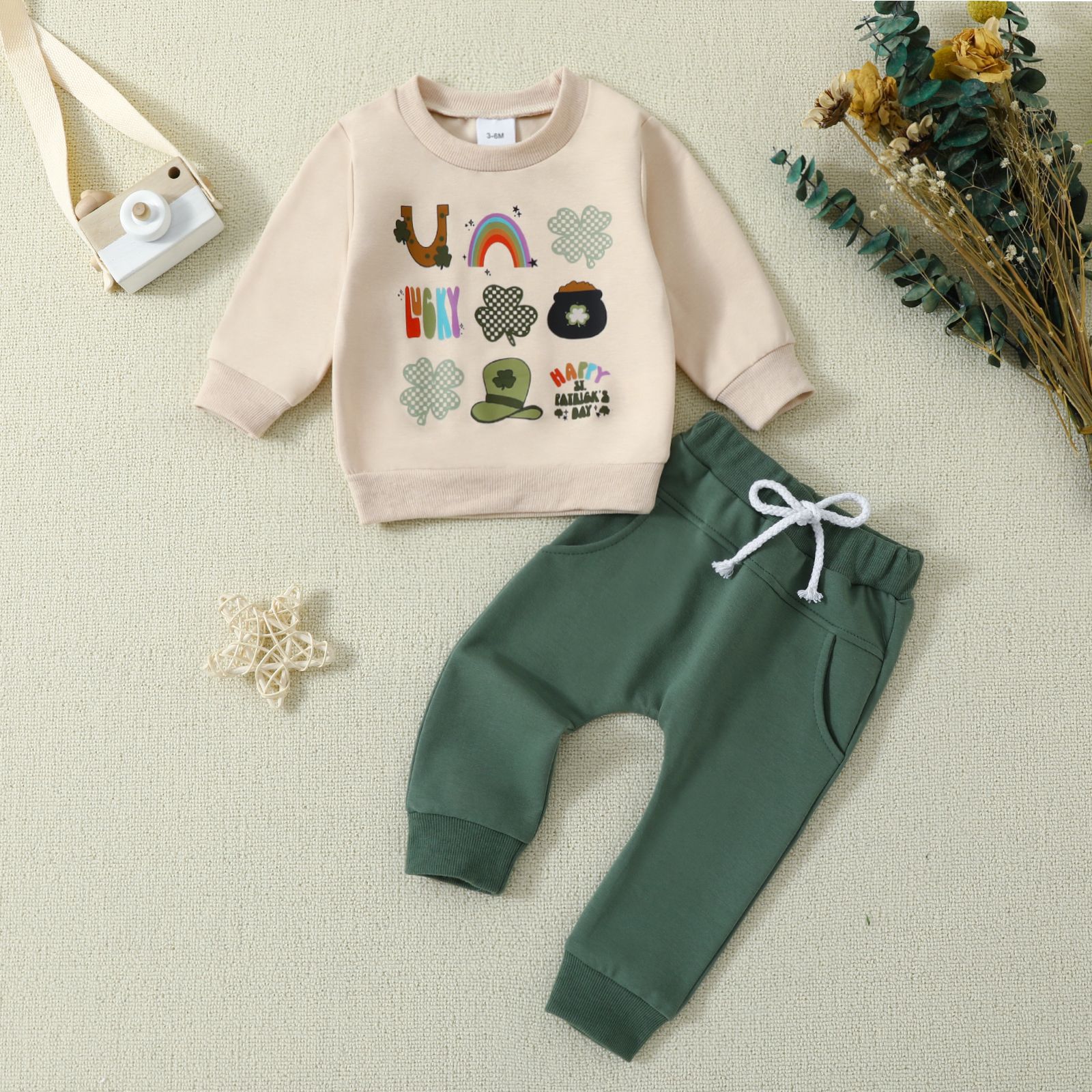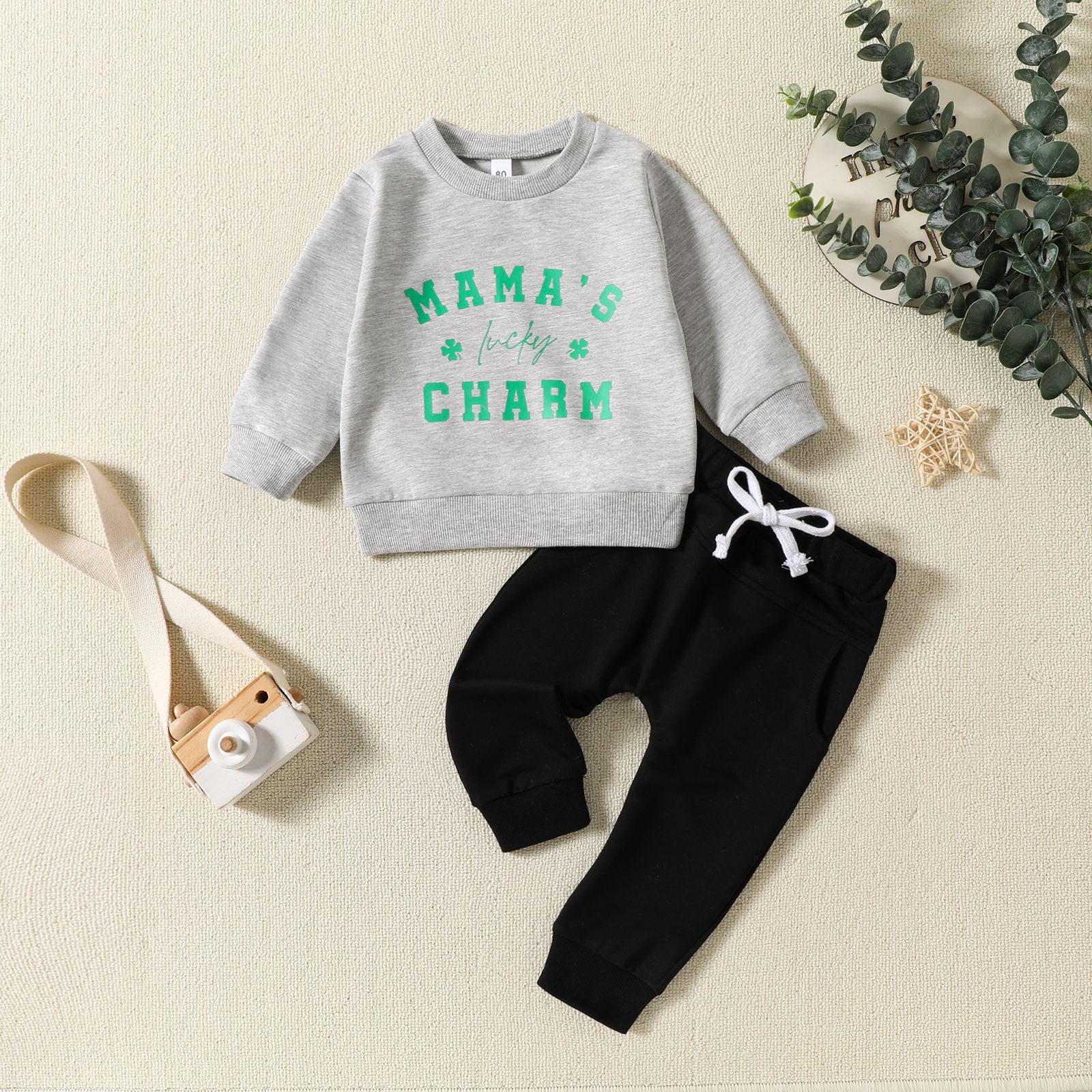 아기의 봄과 가을 긴 소매 탑 바지 투피스 아기 옷 스포츠 유럽과 미국 소년과 소녀 세트