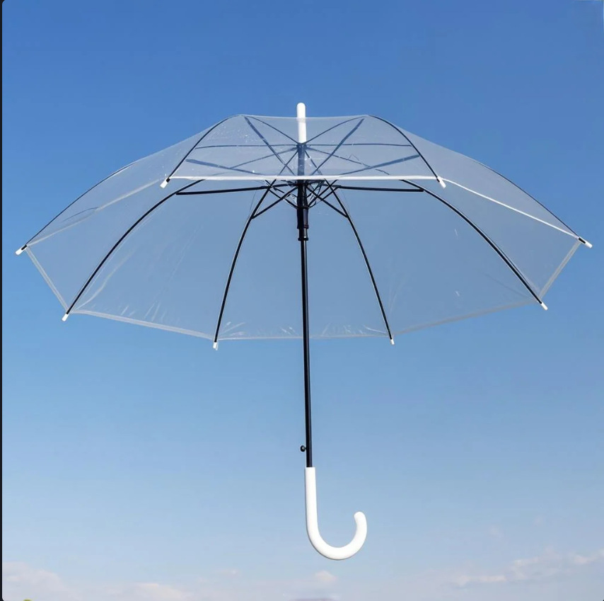 긴 손잡이 투명 우산 학생 어린이 성인용 직선형 8단 우산 로고 인쇄 방수 투명 심플 디자인