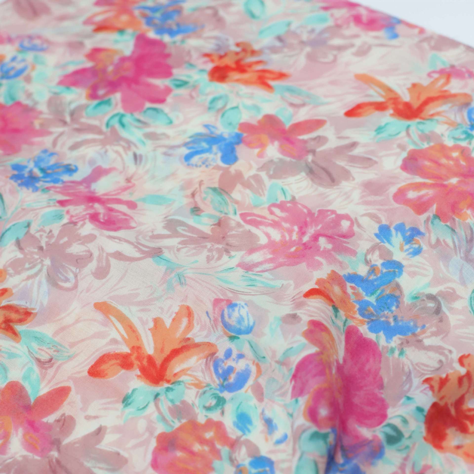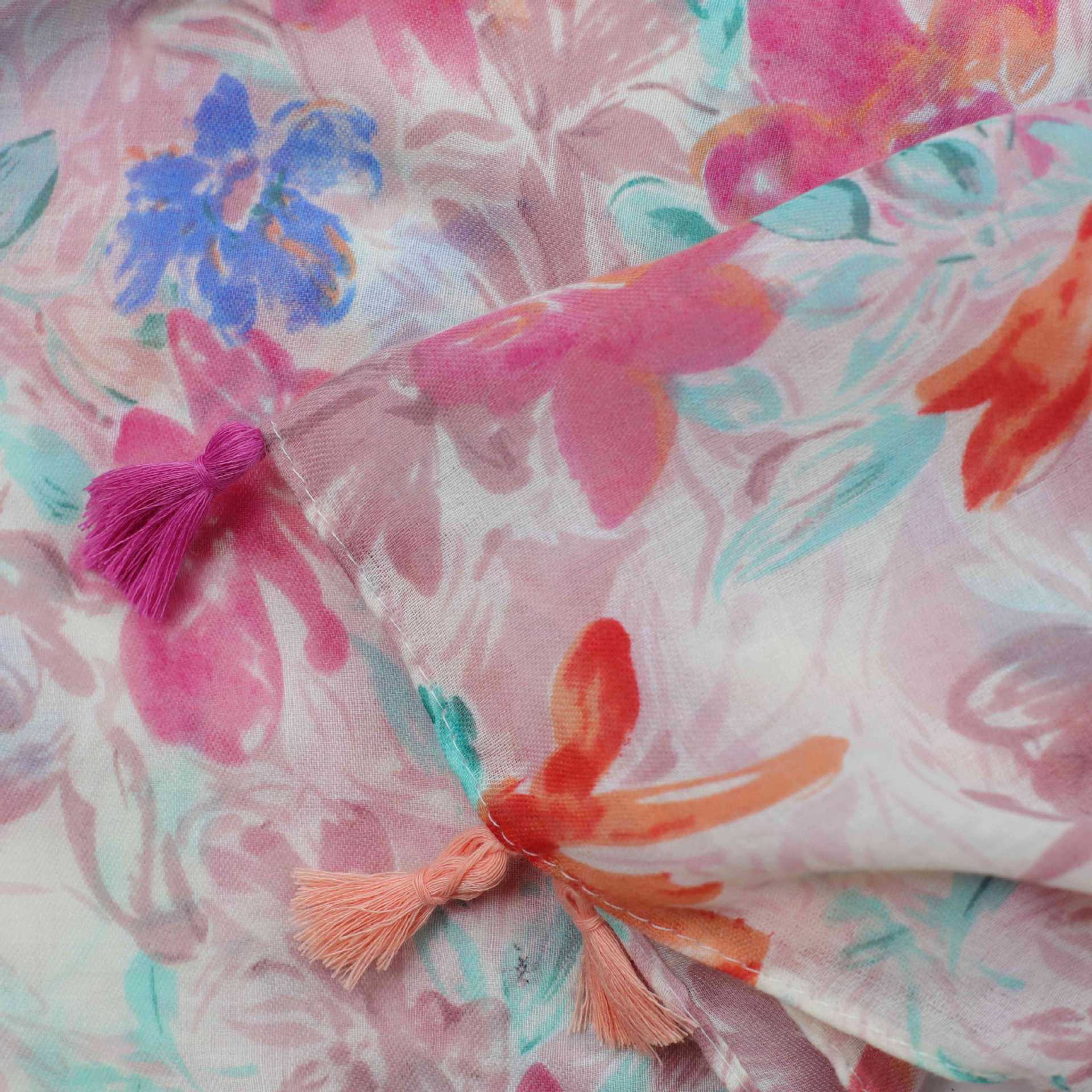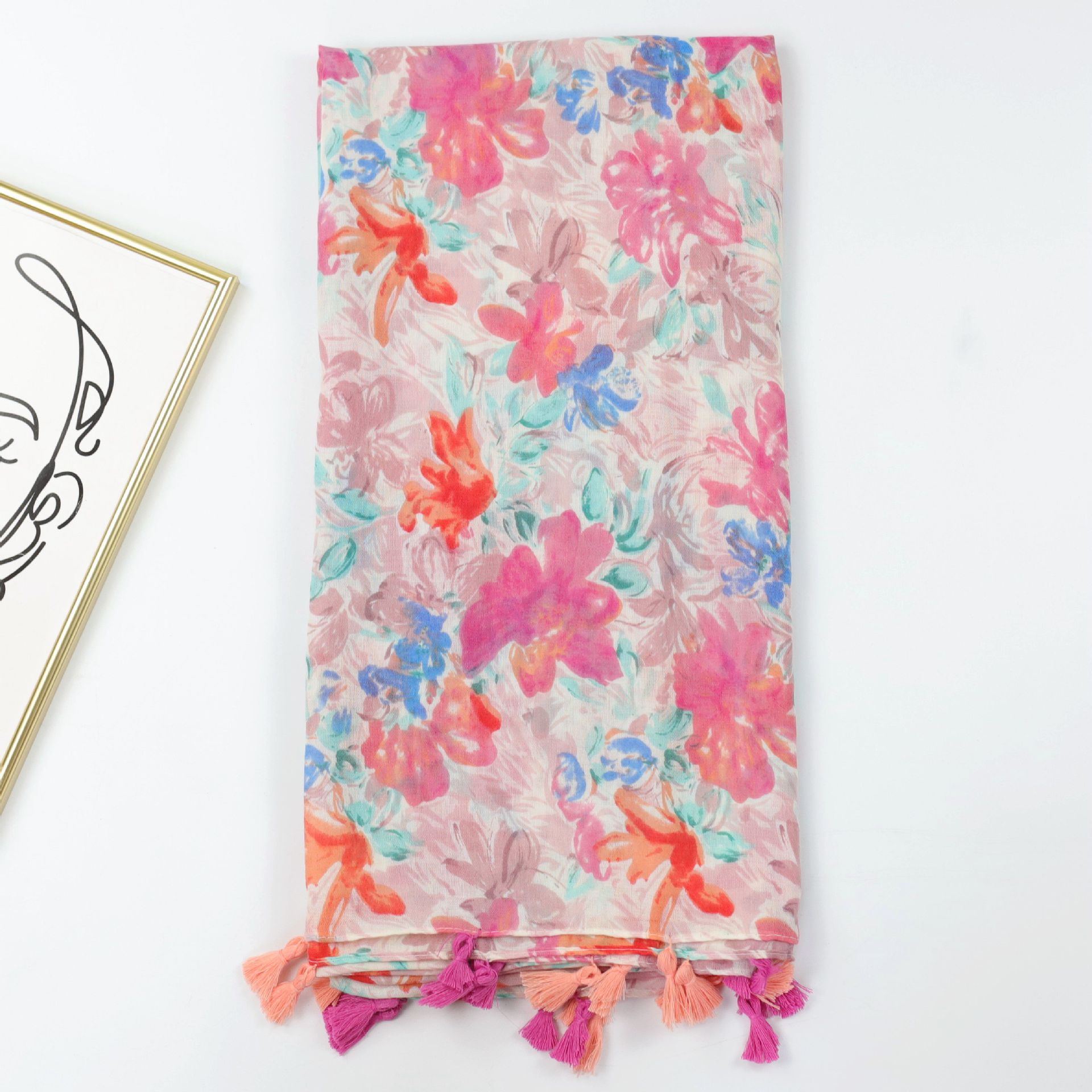 공장 판매 해외 무역 국경 라이브 핑크 달콤한 손으로 그린 꽃 무늬 인쇄 실크 스카프 휴일 여행 자외선 차단제 숄 긴 스카프