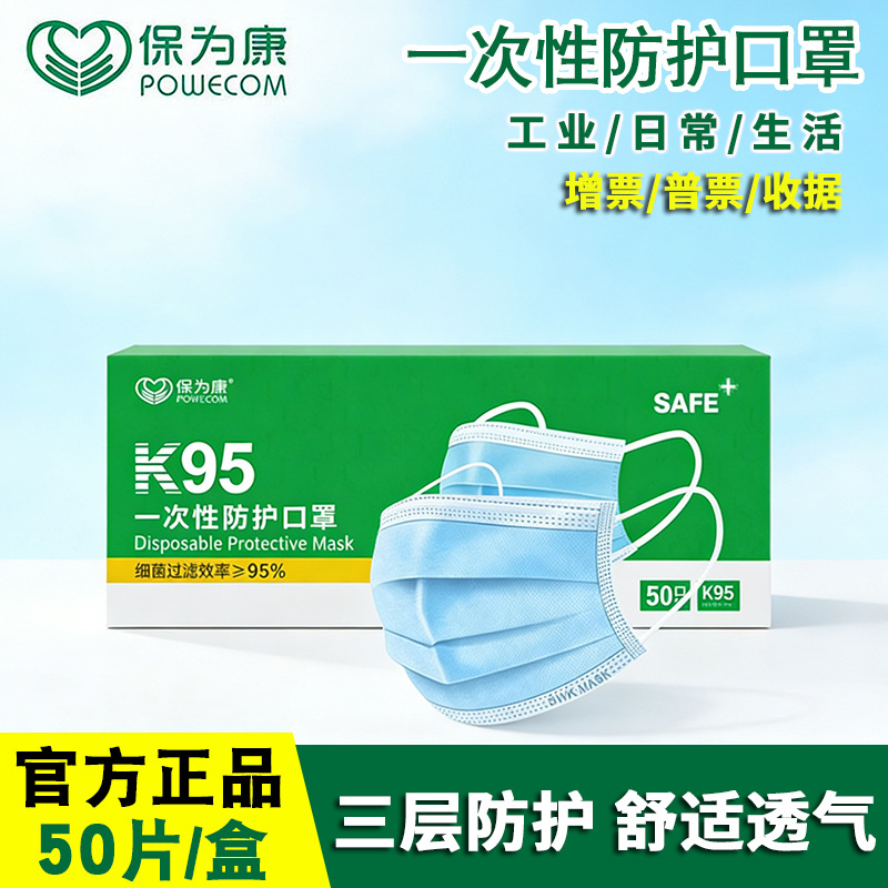 바오웨이캉 K95 마스크 일회용 3 중 보호 방진 관광 산업 통기성 노동 보호 코 마스크 50 팩스토어 가기