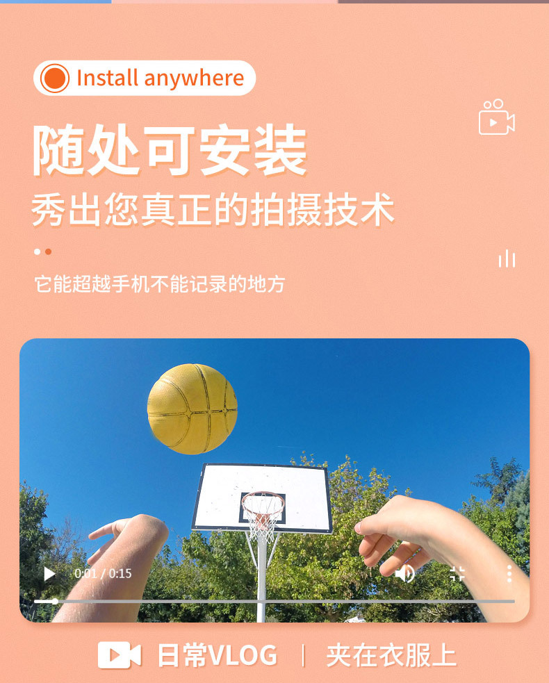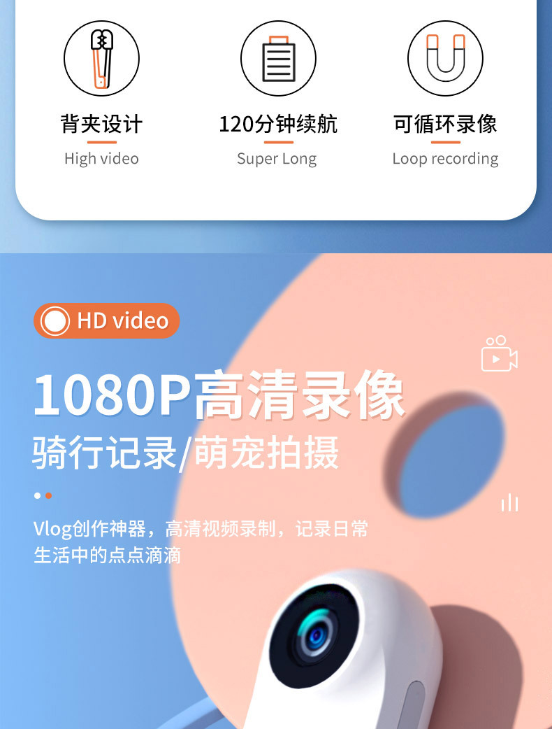 초장시간 배터리 수명, 자석 부착형 엄지손가락 스포츠 카메라, 고화질 야외 휴대용 라이딩 캠코더 레코더, WIFI 무선스토어 가기