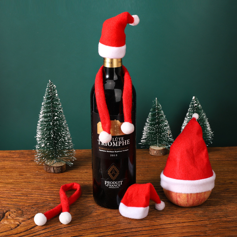 크리스마스 장식 용품 미니 크리스마스 모자 병 와인 병 모자 크리스마스 부직포 모자 파티 용품스토어 가기