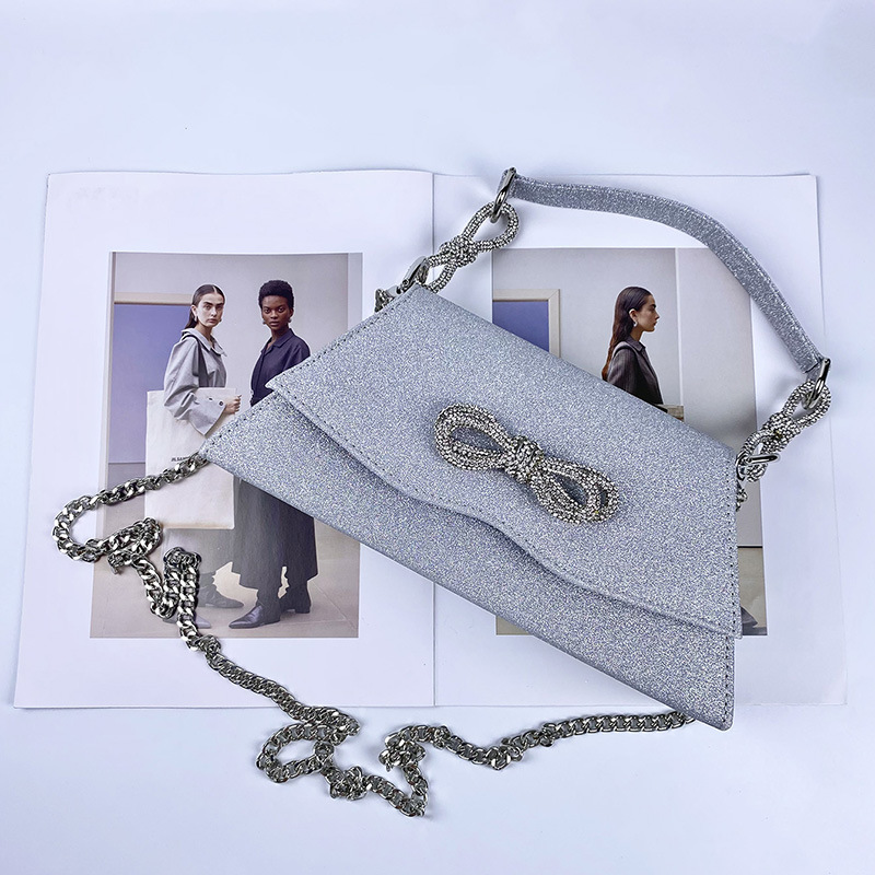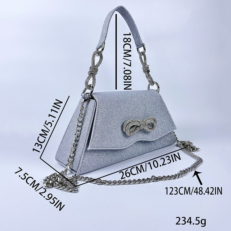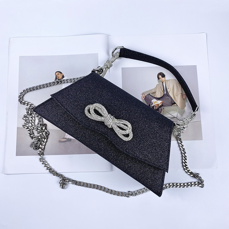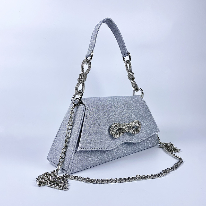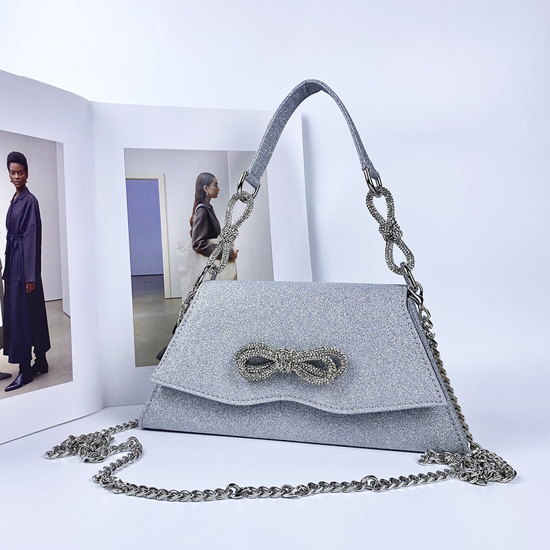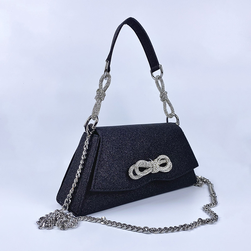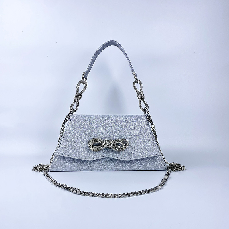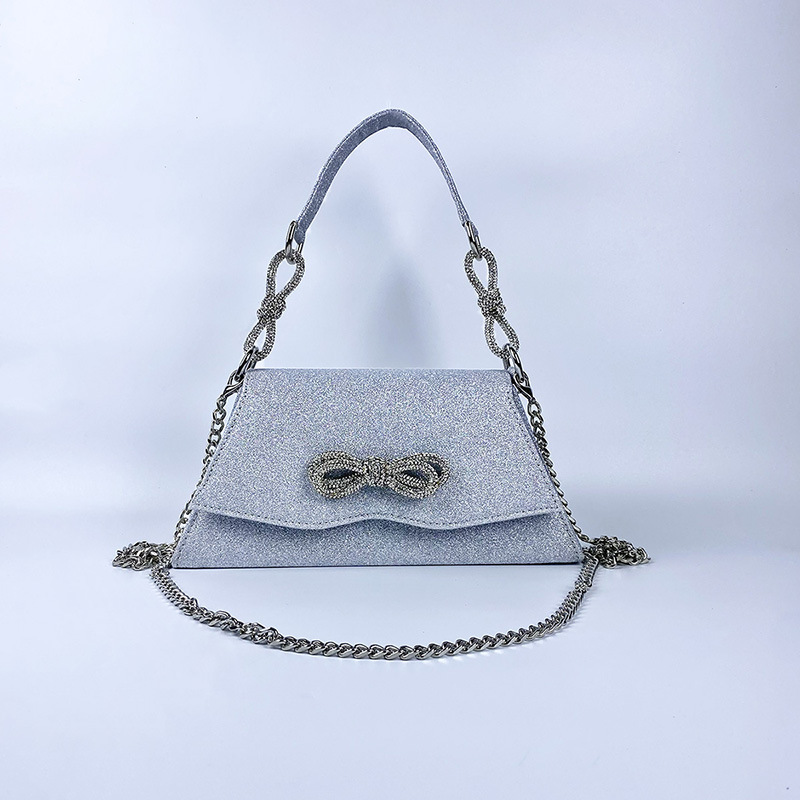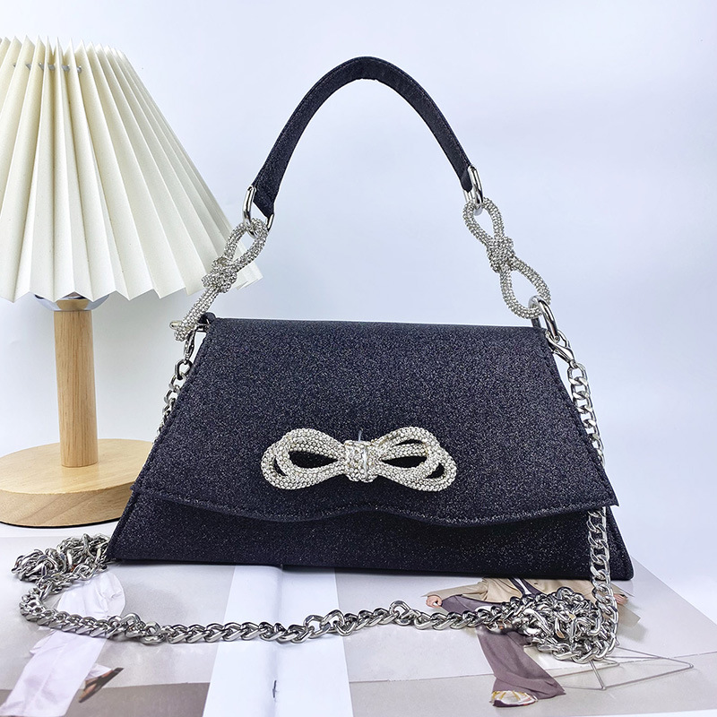 2023 새로운 프랑스 스타일 보우 다이아몬드 이브닝 백 세련되고 트렌디 한 간단한 겨드랑이 어깨 크로스 바디 핸드백