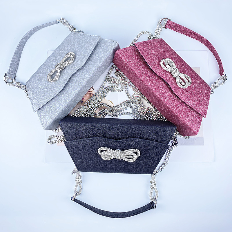 2023 새로운 프랑스 스타일 보우 다이아몬드 이브닝 백 세련되고 트렌디 한 간단한 겨드랑이 어깨 크로스 바디 핸드백스토어 가기