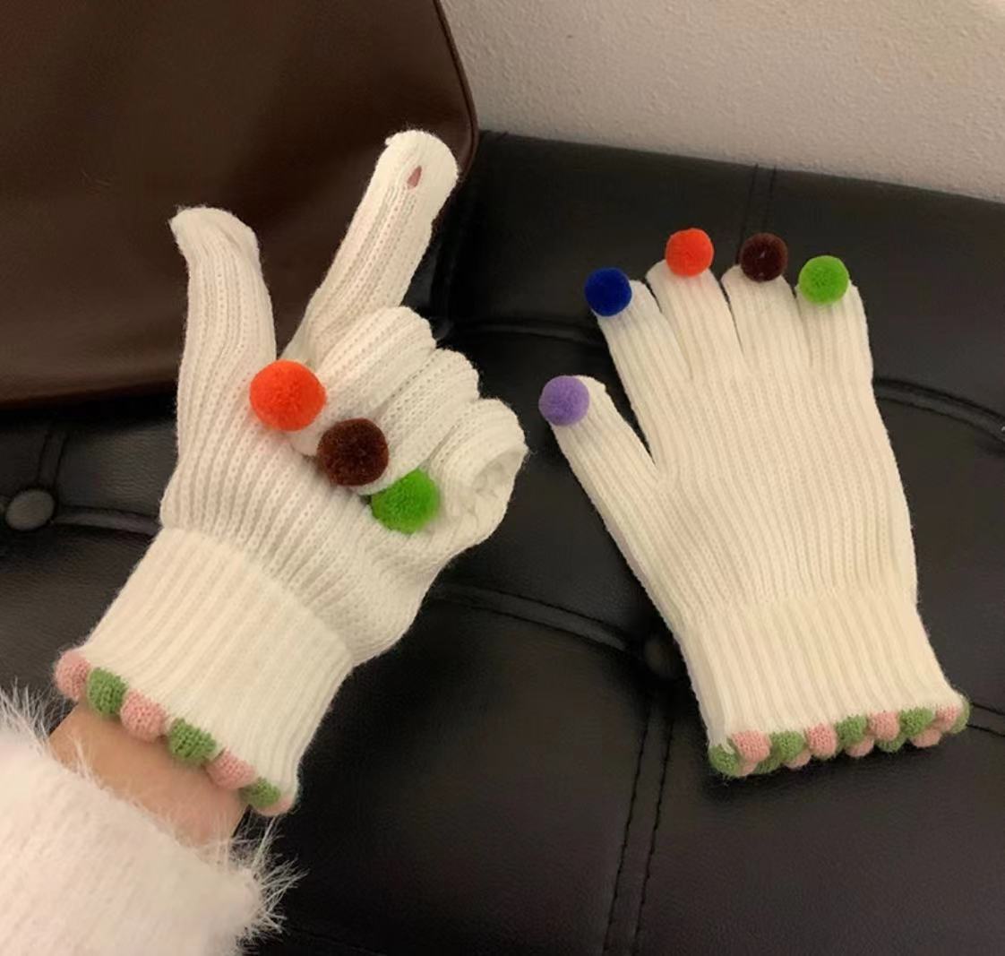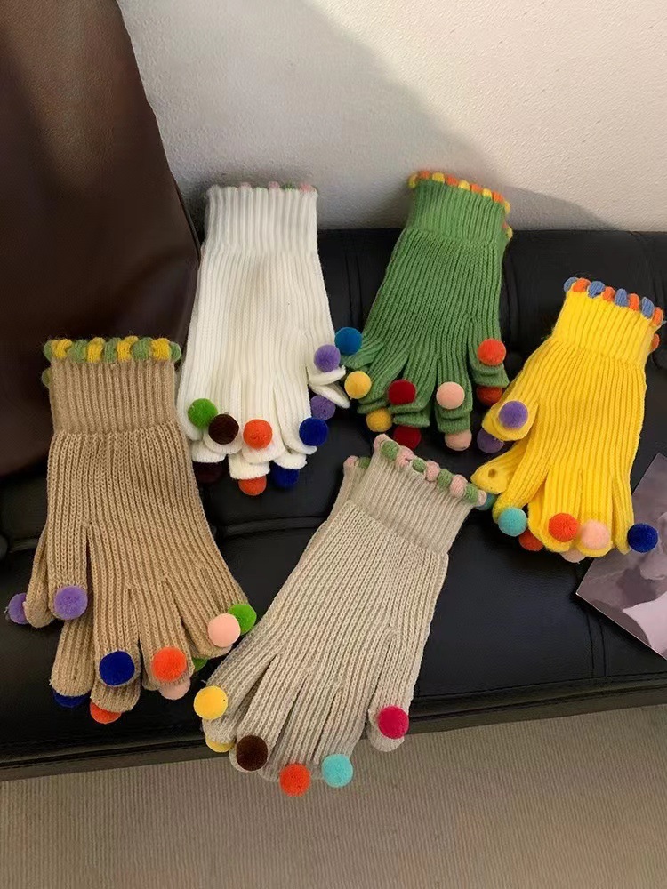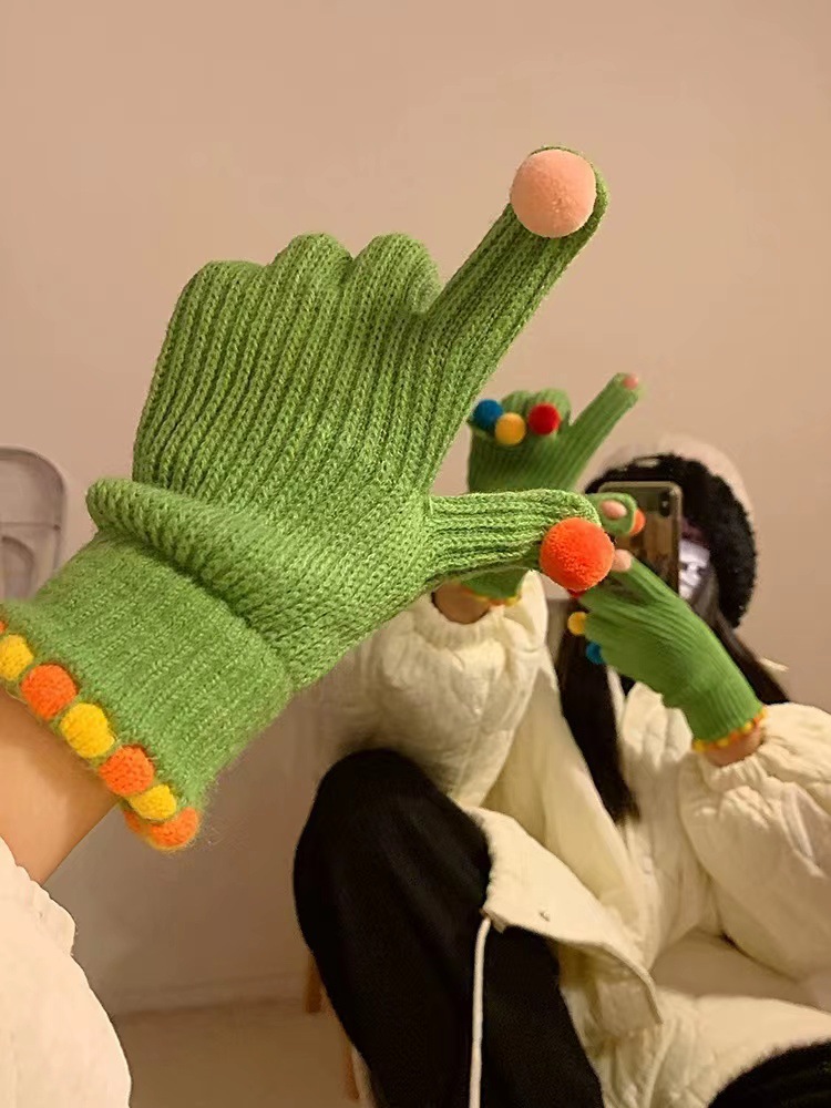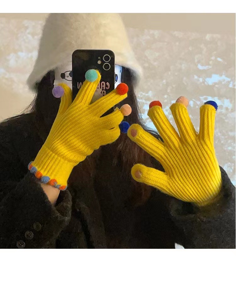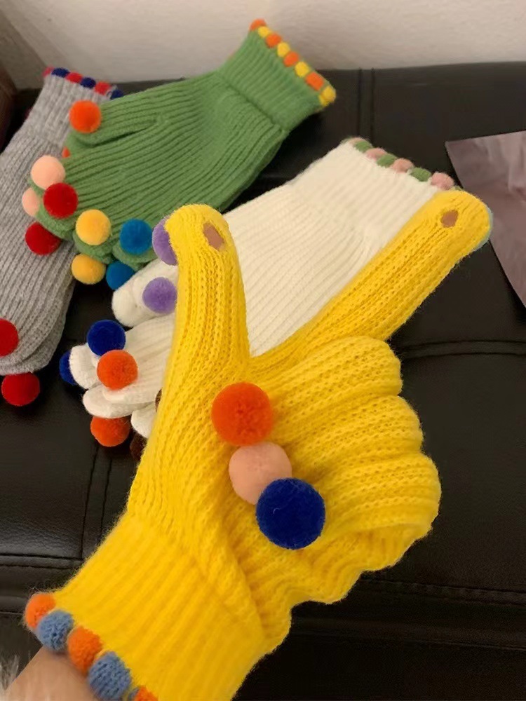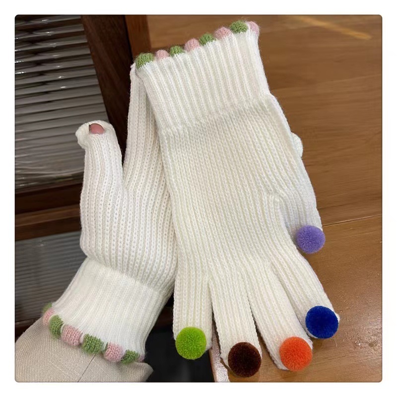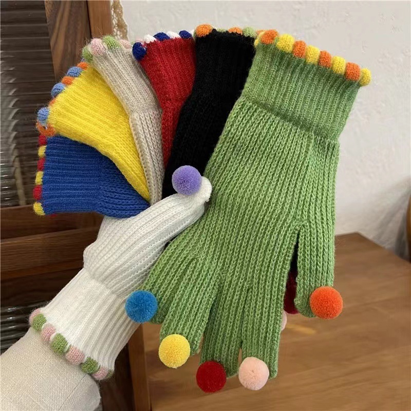 터치 스크린 컬러 울 볼 장갑의 한국어 버전 니트 울 따뜻한 가을과 겨울 사이클링 두꺼운 방한 캔디 컬러 오픈 손가락
